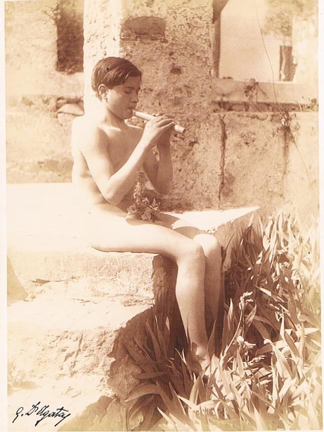 En la transición entre los siglos XIX y XX, las fotografías de los alemanes Wilhelm Plüschow y Wilhelm Gloeden, tomadas a jóvenes en la localidad siciliana de Taormina, dieron lugar a los mayores referentes del arte homoerótico. Por las mismas fechas, otro fotógrafo siciliano, Gaetano D’Agata (Aci Sant’Antonio, Catania, Sicilia, Italia, 1883-1949) estuvo activo en esta localidad. Como en el caso de los artistas alemanes, su obra muestra jóvenes o niños desnudos pero, en mi opinión, la carga erótica es menor y predomina un carácter naturista y romántico. Se ha pretendido una confrontación entre Gloeden y D’Agata, pero no está nada claro que esto haya sido así, pues una de las obras icónicas de este último fotógrafo, «Caín», parece inspirarse más en la versión fotográfica de Gloeden que en la pintura original de Flandrin («Desnudo sentado al borde del mar»).