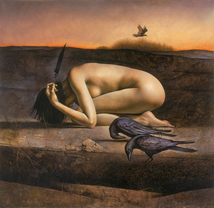 John Jude Palencar (Fairview Park, Ohio, USA, 1957) es un ilustrador americano especializado en los géneros de fantasía, ciencia ficción y horror. Aunque su obra es rica y con una compleja simbología, en España lo reconocemos con facilidad como autor de las portadas de las populares obras de Christopher Paolini (Eragon, Eldest, El Legado). Sus desnudos no son muy abundantes y me recuerdan las pinturas de Odd Nerdrum.