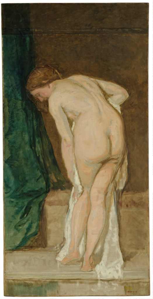 Eduardo Rosales Gallinas (Madrid, España, 1836-1873) tuvo una corta y difícil vida. Como artista viajó a París – donde admiró la obra histórica de Léon Coignet y Paul Delarroche – y a Roma en la que estudió la pintura del Renacimiento Italiano. Se unió al movimiento artístico conocido como «Purismo», que hacía uso de formas básicas, sin elementos superfluos, y quería huir del decorativismo al que, pretendidamente, había llegado el cubismo. No resulta fácil apreciar estos hechos en los desnudos que les voy a mostrar. En cualquier caso, su fama la obtuvo como pintor histórico.
