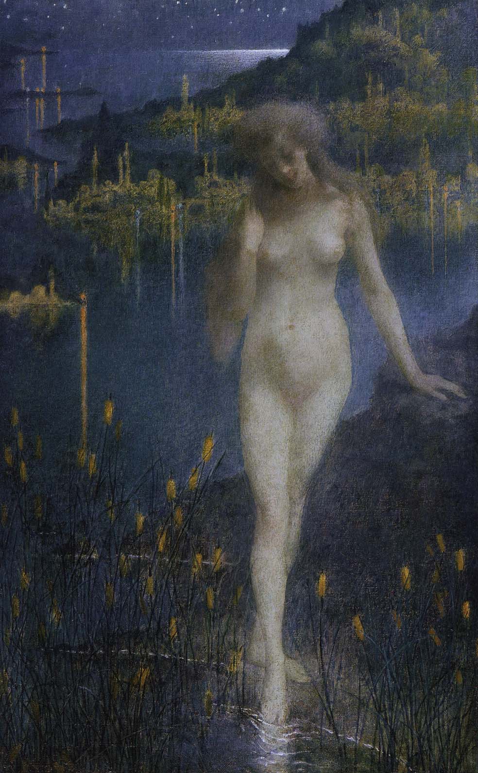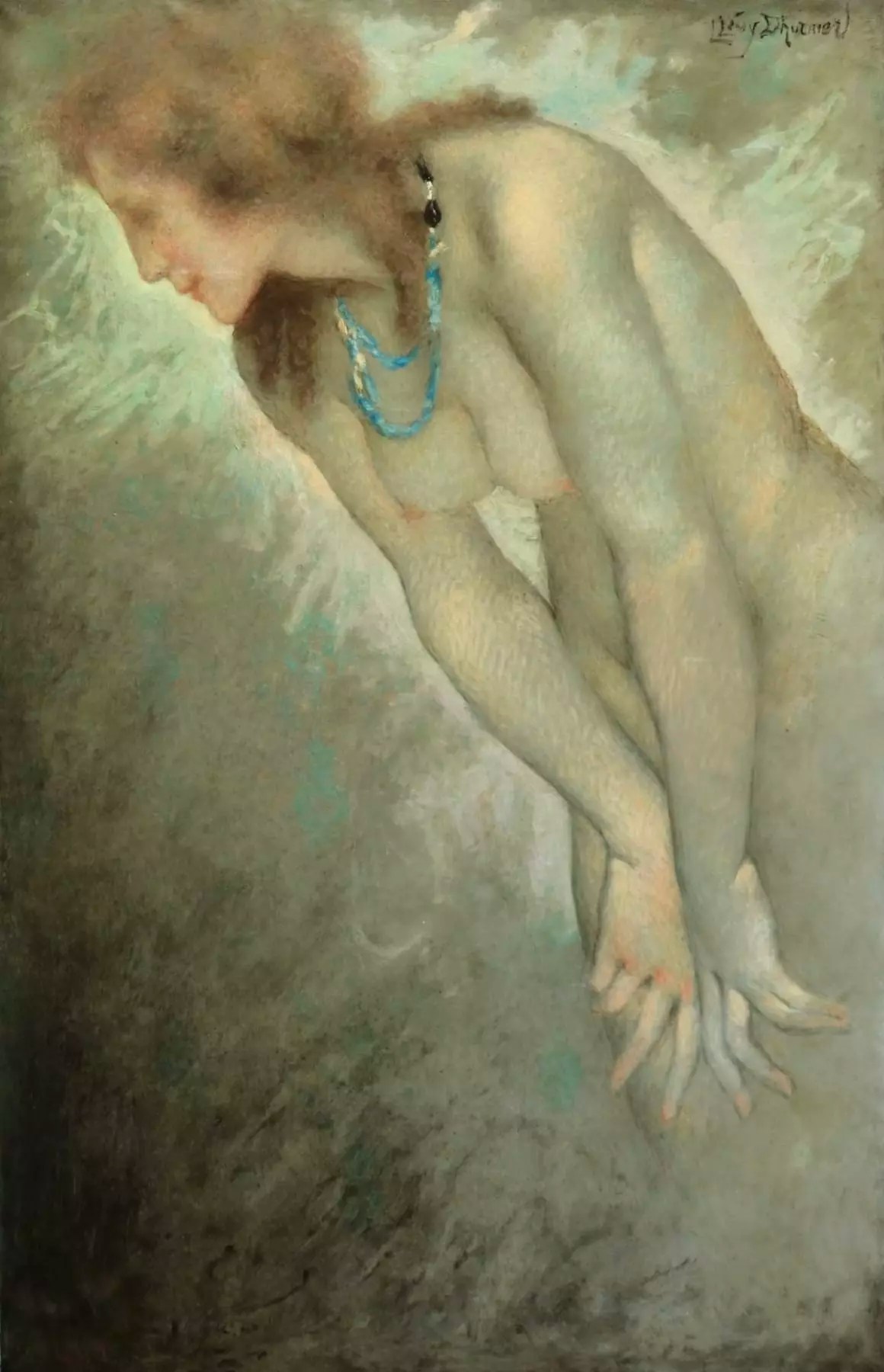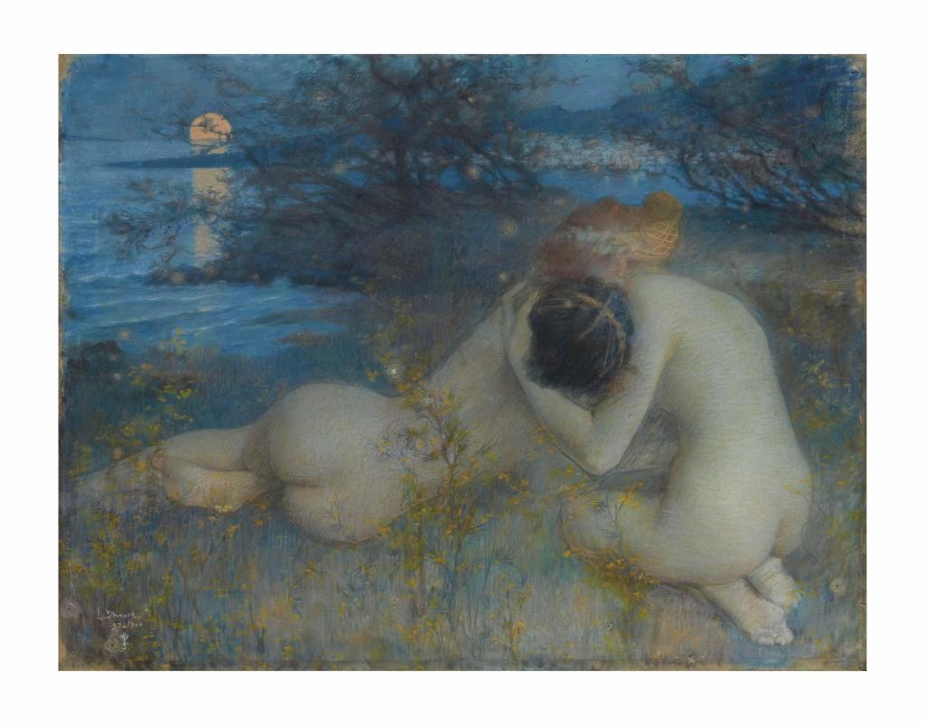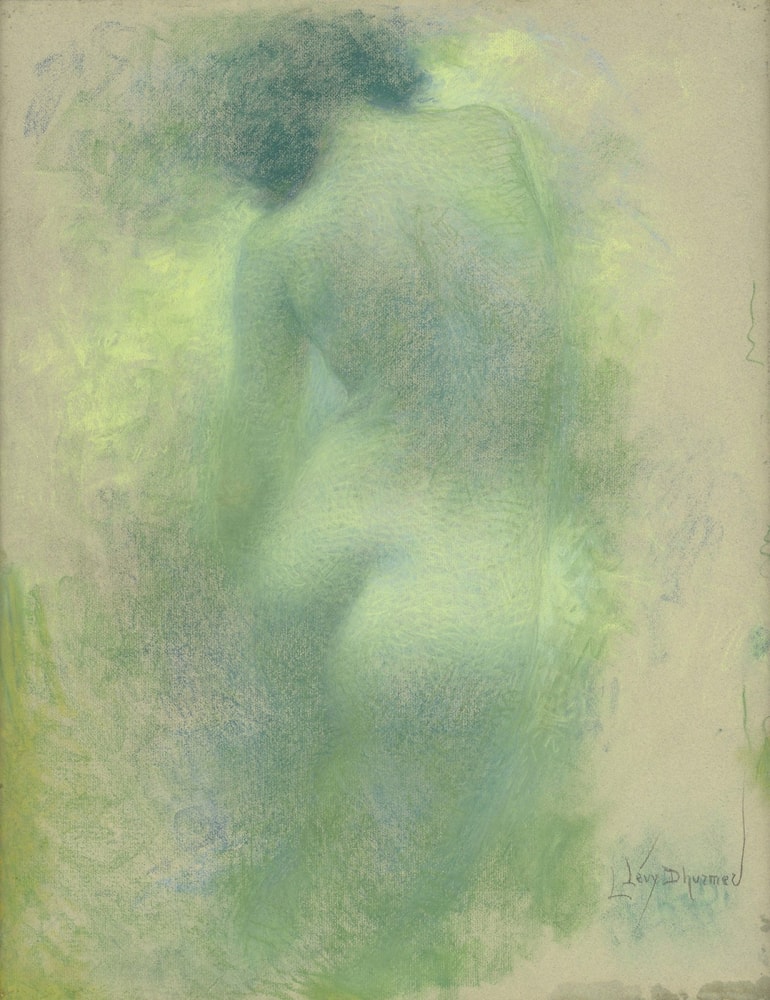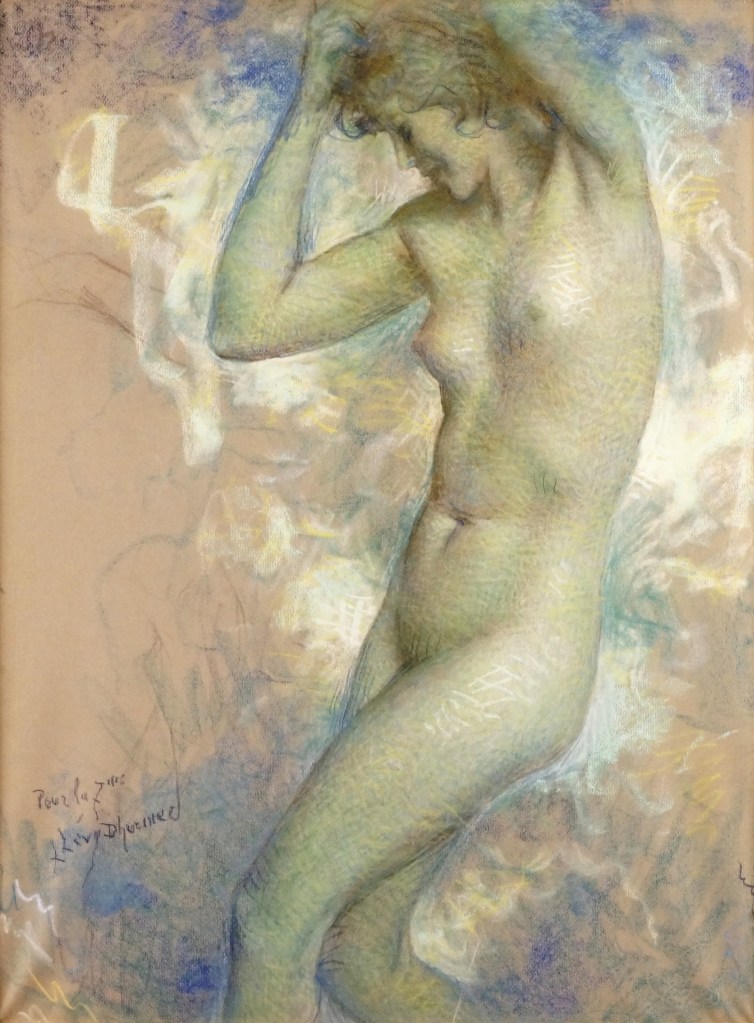 El estilo poético y misterioso que caracterizó en gran medida a los movimientos simbolistas y Art-Deco, toma un papel muy destacado al analizar la obra de Lucien Lévy-Dhurmer (Argel, Argelia francesa, 1865-1953). Fue discípulo de Raphaël Collin y estuvo influenciado por el prerrafaelismo, el arte renacentista en general y por, el también simbolista, Pierre Puvis de Chavannes. En la elaboración de sus desnudos solía hacer uso de la técnica del pastel, aunque también utilizó el óleo y fue un excelente ceramista.