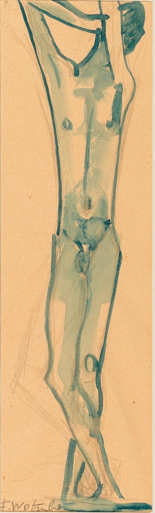 Fritz Wotruba (Viena, Austria, 1907-1975) fue uno de los escultores austriacos más destacados del periodo entreguerras. Se inició en la escultura a través del grabado que practicó en el taller del vienés Josef Schantin. En escultura trabajó más la talla que el modelado, y sus obras nos muestran figuras humanas en distintas posiciones, pulidas – pero al mismo tiempo toscas -, inspiradas en las esculturas de las colonias que llegaban a Europa. Son obras geometrizantes que se basan en volúmenes sencillos y se aproximan a la abstracción. Su obra más famosa no es escultórica. Se trata de la Iglesia Wotruba, de estilo brutalista, finalizada un año después de la muerte del artista.
