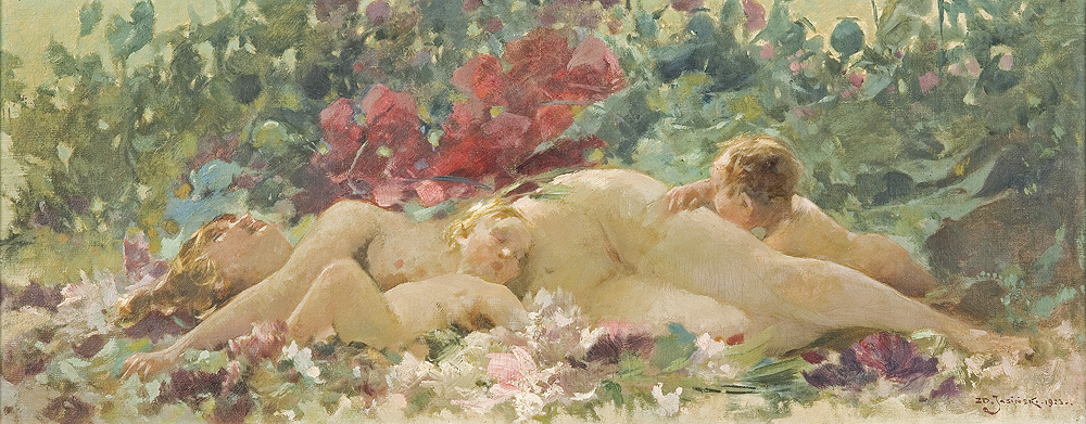 Zdzistaw Jasinski (Varsovia, Polonia, 1863-1932) fue un pintor y dibujante con un estilo realista que fue evolucionando desde un realismo clasicista hacia unas formas impresionistas. Vivió fundamentalmente en Varsovia y su entorno pero viajó y trabajó por toda Europa y llegó a exponer con éxito en los Estados Unidos. Fue cofundador del grupo «Pro-Arte», un grupo algo difícil de definir que apostaba por un realismo basado en fuentes nacionales y se oponía a la abstracción de las vanguardias. Sus creaciones fueron fundamentalmente pinturas de género y los desnudos muy escasos, aunque el «Desnudo» con el que abro esta mini-exposición es, verdaderamente, muy relevante.