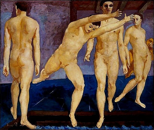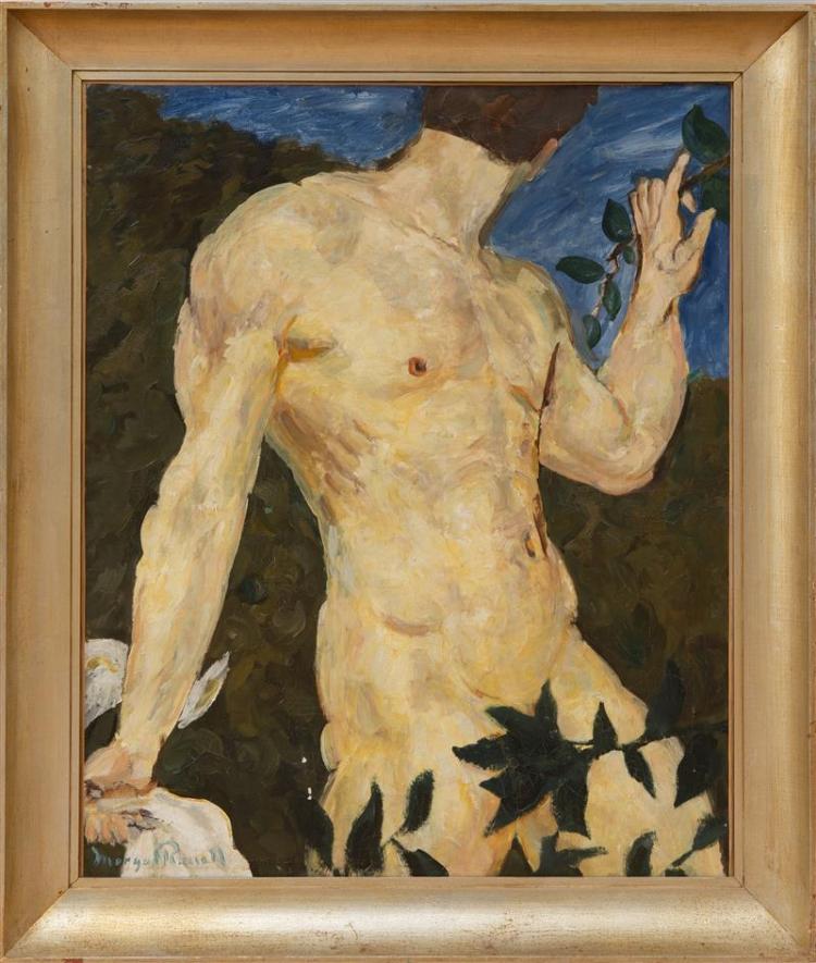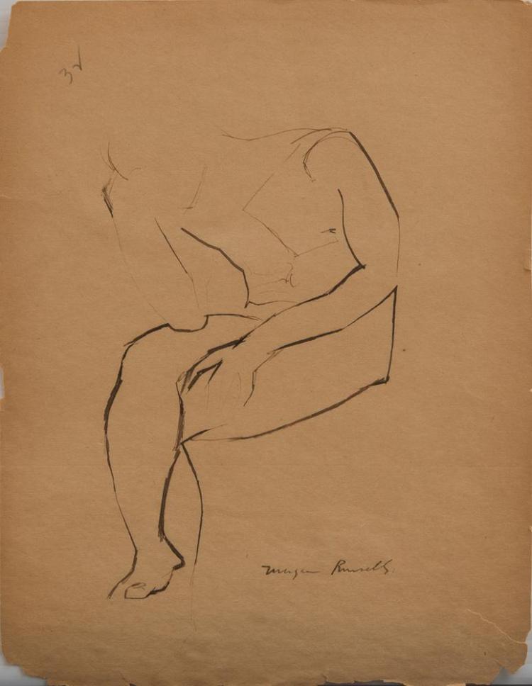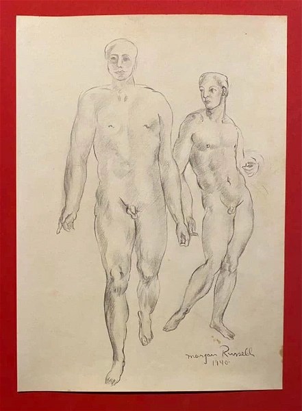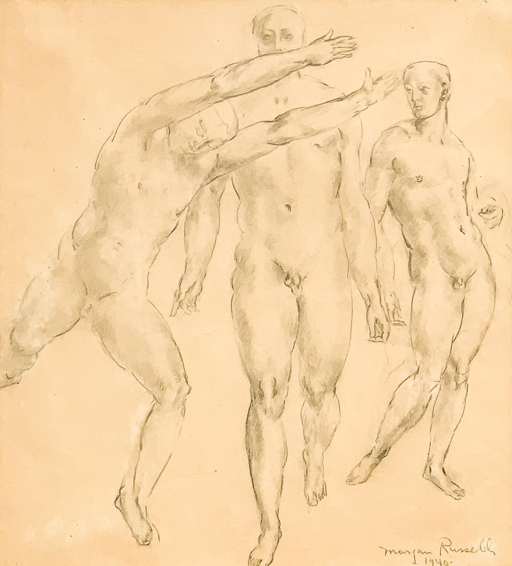 Aunque la obra pictórica de Morgan Russell (Nueva York, Nueva York, USA, 1886-1953) se caracterizó por su carácter abstracto, podemos encontrar dibujos, pinturas y esculturas de este autor en las que existen elementos figurativos lo suficientemente claros como para poder catalogarlos como desnudos. Russell y Stanton MacDonald-Wright fundaron el movimiento «sincromista» en 1912. Este movimiento intenta generar armonías de color similares a las armonías musicales, y tiene algunas analogías con el «orfismo».