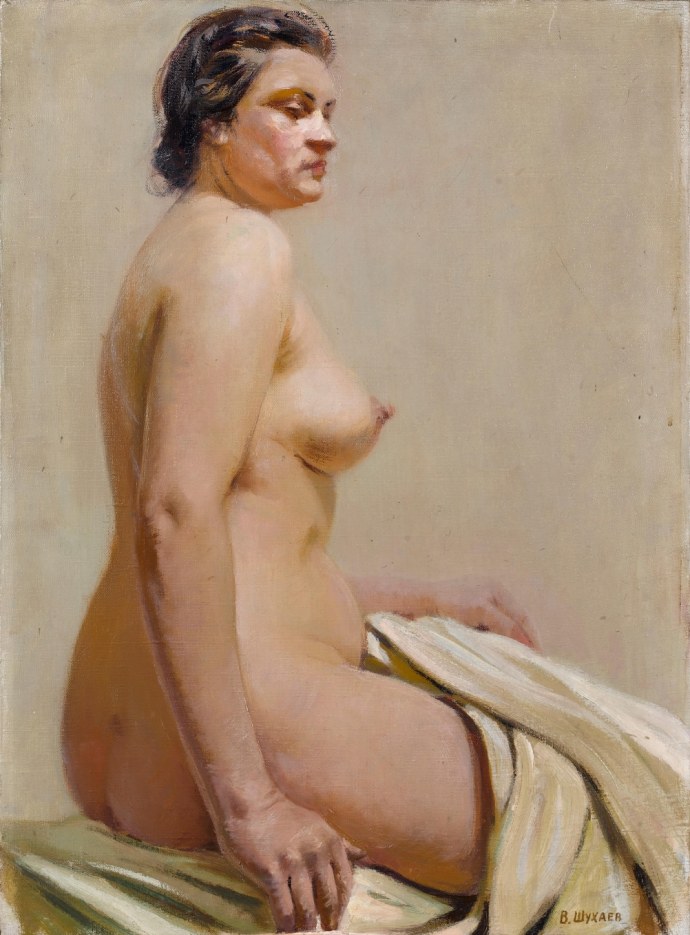Vasiliy Shukhaev (Moscú, Rusia, 1887-1973) fue un gran maestro de la pintura y el dibujo. Inició su formación en Moscú y San Petersburgo y, posteriormente, en Italia y Francia. En 1920 emigró a Finlandia y pasó 14 años en Francia. Apenas un par de años después de su regreso a Rusia, fue arrestado, acusado de crímenes contrarrevolucionarios, y exilado a la región de Kolima. Mas tarde vivió en Georgia y finalmente, en Moscú. Trabajó magistralmente la técnica de la sanguina realizando un gran número de dibujos.