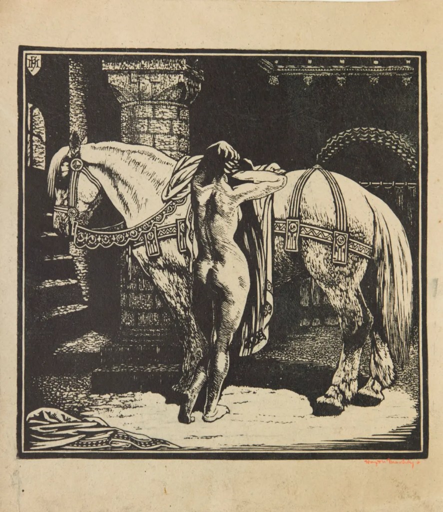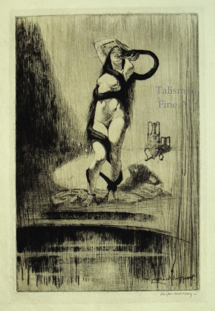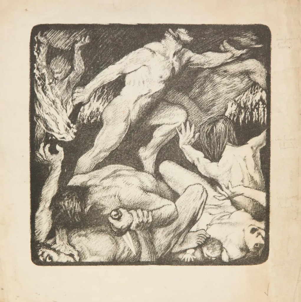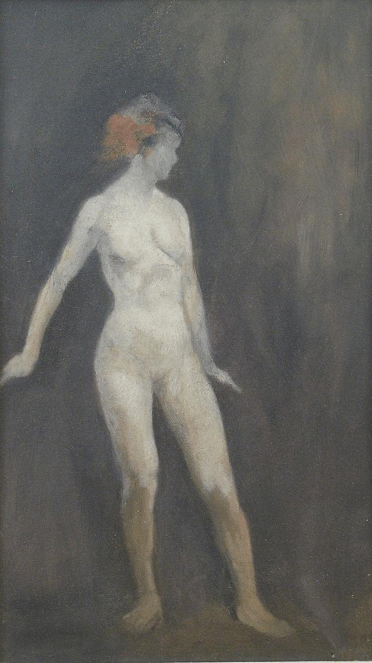 La pintura de este artista se relaciona mucho con el mundo bélico. Sus desnudos pertenecen al mundo de la ilustración y se inscriben formalmente en el movimiento simbolista.
