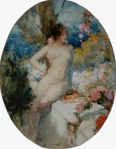 Antoine Calbet (Engayrac, Francia, 1860-1944) fue un discípulo de Alexandre Cabanel que se dedicó al retrato y a la pintura de género y, muy especialmente, al desnudo femenino. En su amplia producción destacan óleos t acuarelas, pero también dibujos y litografías.