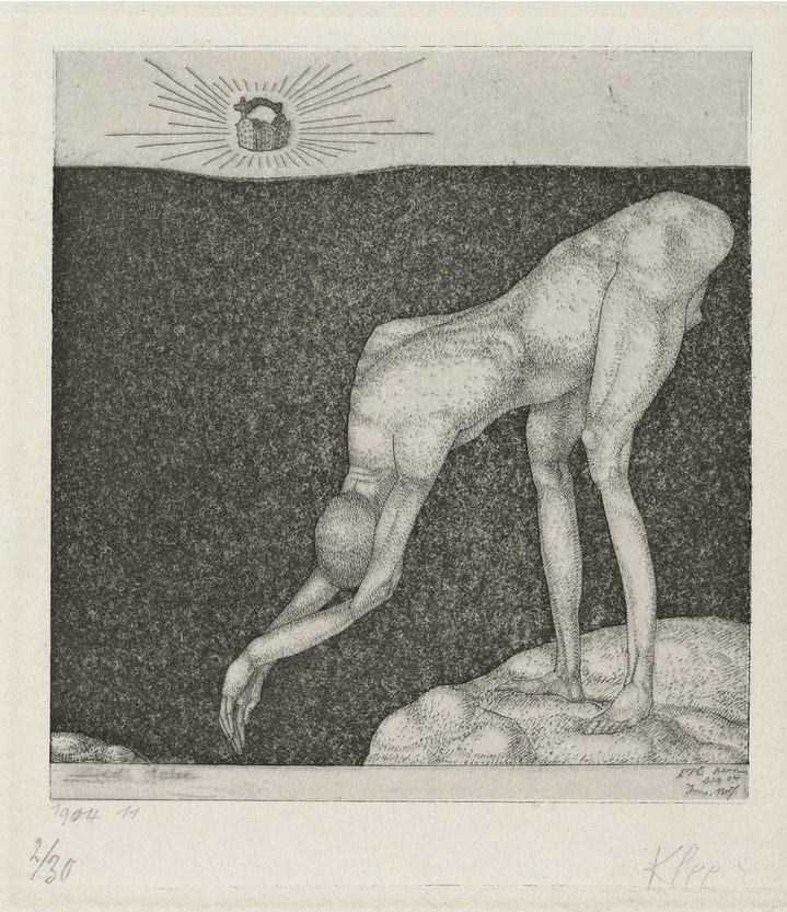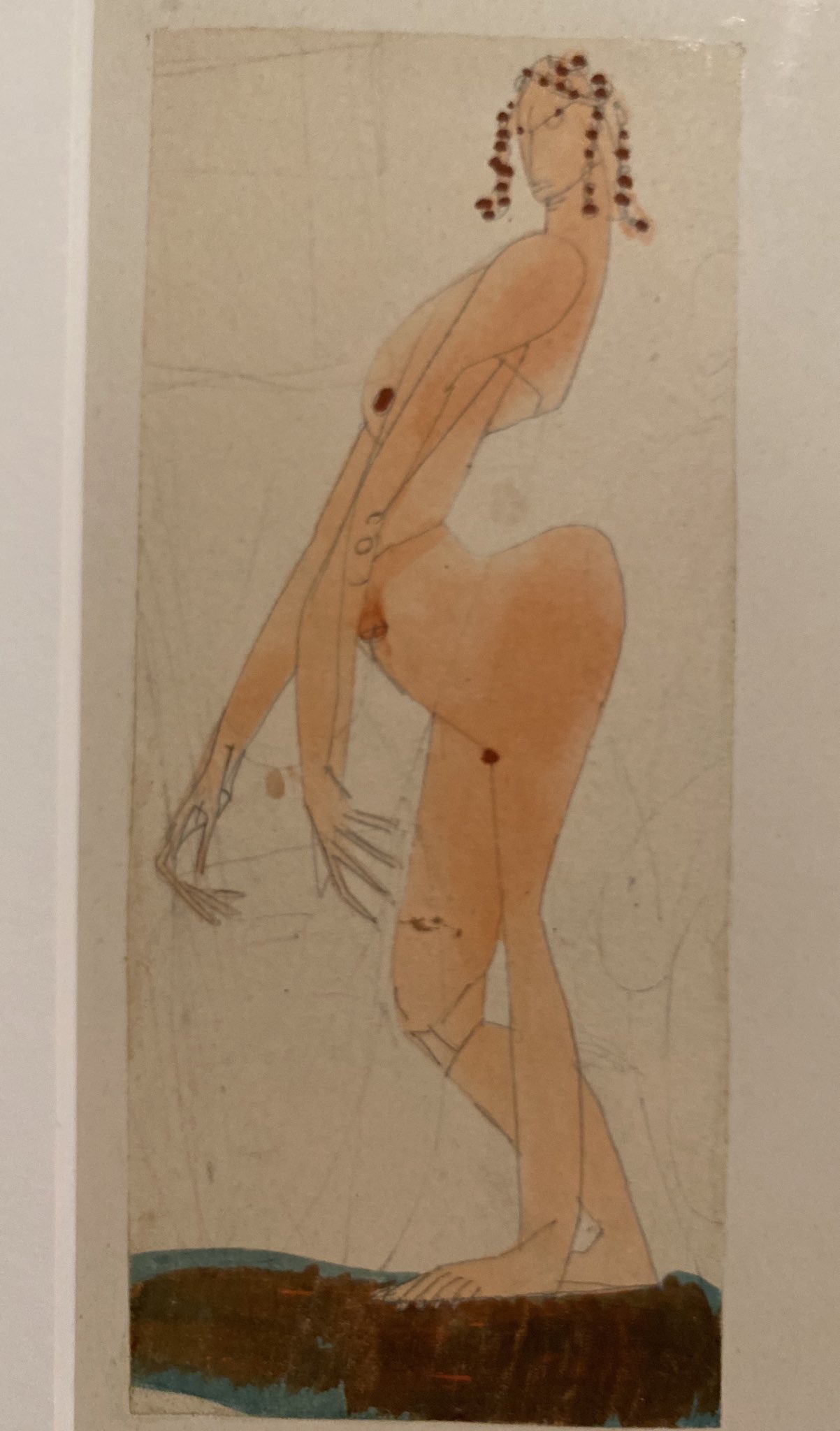 Parece sorprendente que pueda traer aquí a un maestro del informalismo, muy próximo a la abstracción, como es el pintor alemán Paul Klee (Münchenbuchsee, Suiza, 1879-1940), pera la andadura de este artista fue bastante compleja. Discípulo de Heinrich Knirr y de Franz von Stuck, fue profesor de la Bauhaus, afín al movimiento expresionista Blaue Reiter y se relacionó, igualmente, con el movimiento surrealista. Con estos compartió su interés por los enfermos mentales y un cierto carácter morboso. Su obra muestra ironía e interés político. Con el color se aprecia una evolución entre su desprecio inicial y los vibrantes tonos que fue adquiriendo su pintura. Las obras que les muestro de aste artista ilustran, dentro del limitado campo del desnudo, la complejidad y diversidad del arte de Klee.