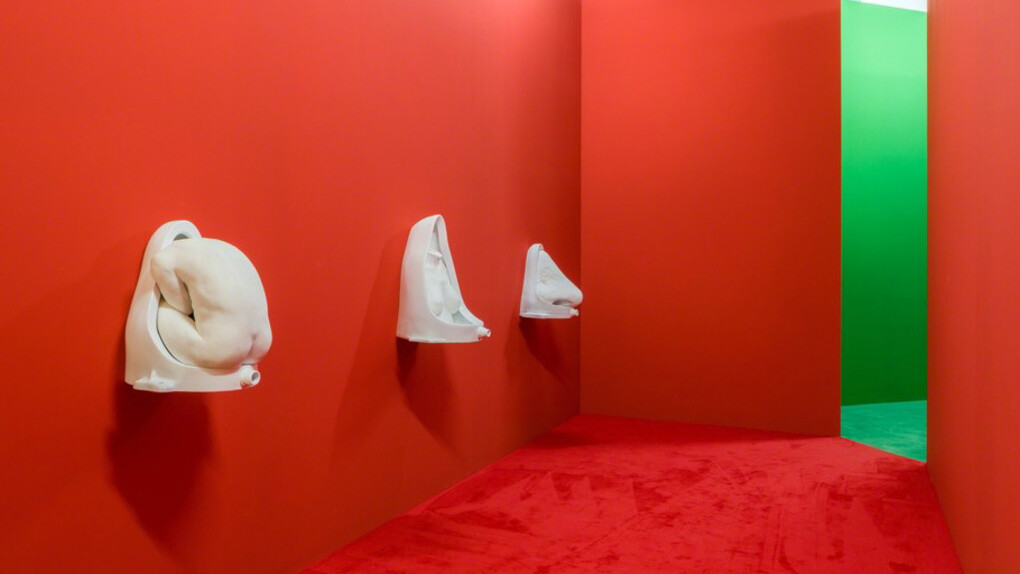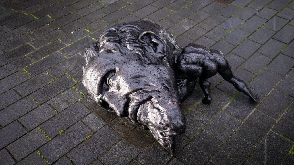 “Quería crear una estatua de inspiración clásica que casi se cayera, como si estuviera borracha”, explica Lerooy. “Me gusta la idea de una escultura dentro de otra escultura con algo saliendo. Así que hago agujeros en el cuerpo y coloco botellas allí, haciendo que parezca que el cuerpo tiene alguna fuga”.