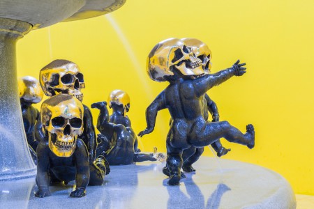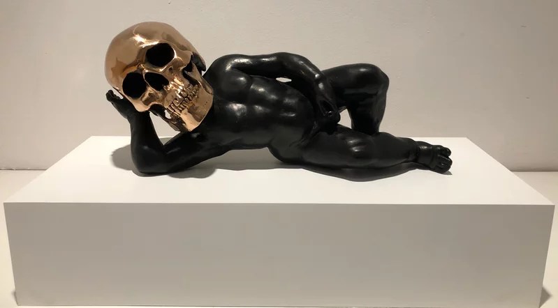 En esta otra, un «putto» con una calavera por cabeza realiza diversas acciones, en algunos casos recordándonos esculturas clásicas: