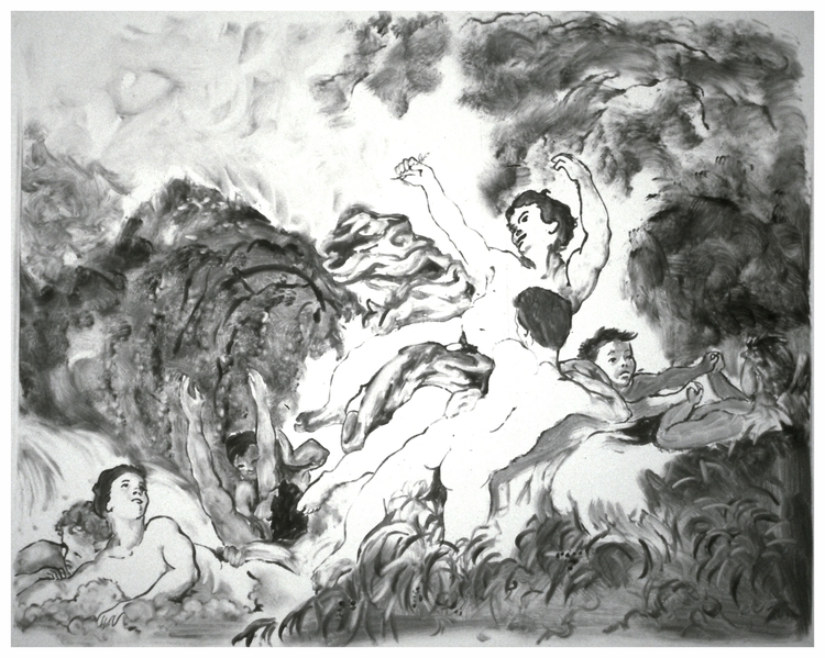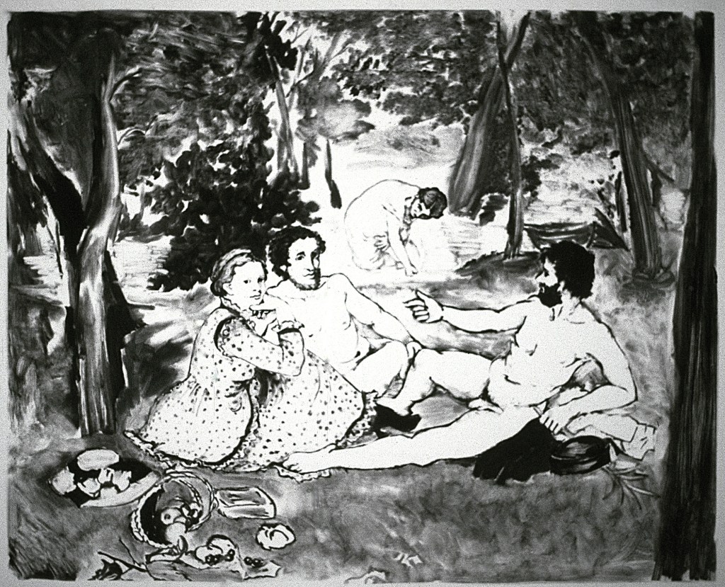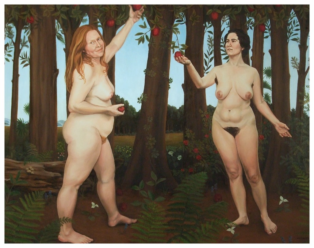 Mary Ellen Croteau (Chicago, Illinois, USA, 1950-2019) es una artista multidisciplinar que centró su atención en lo absurdo de muchas normas sociales, en el predomino de una visión masculina sexualizada del desnudo a lo largo de toda la historia del arte, y en la exclusión de la mujer como elemento activo. Su feminismo nos señala hasta qué punto nuestra cultura está construida sobre bases sexistas. En la mayoría de las obras que les muestro, vemos como invierte los sexos en parodias de pinturas clásicas muy conocidas.