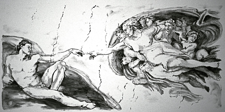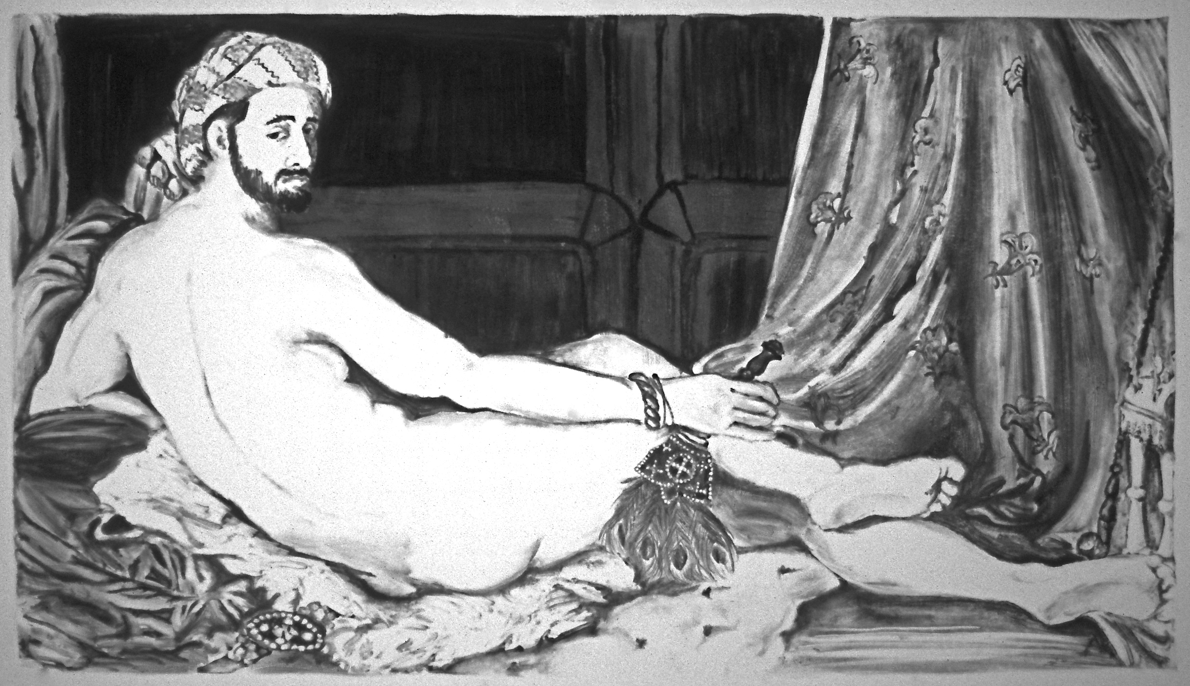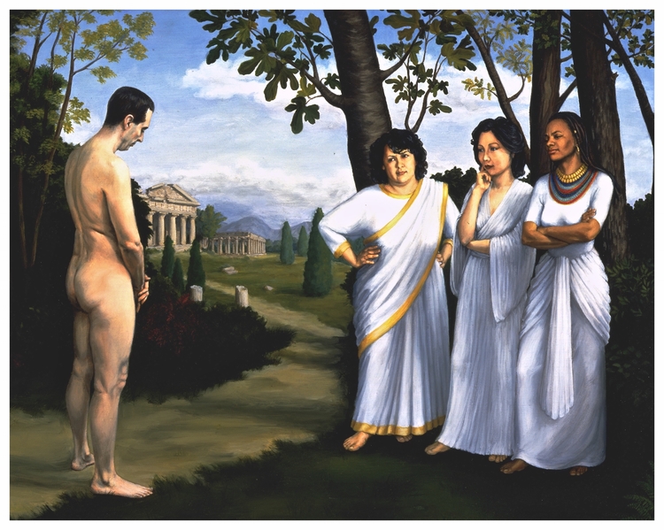 Mary Ellen Croteau (Chicago, Illinois, USA, 1950-2019) es una artista multidisciplinar que centró su atención en lo absurdo de muchas normas sociales, en el predomino de una visión masculina sexualizada del desnudo a lo largo de toda la historia del arte, y en la exclusión de la mujer como elemento activo. Su feminismo nos señala hasta qué punto nuestra cultura está construida sobre bases sexistas. En la mayoría de las obras que les muestro, vemos como invierte los sexos en parodias de pinturas clásicas muy conocidas.