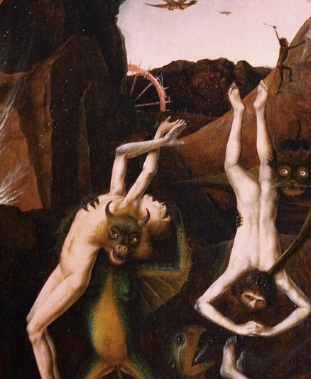 Posiblemente esta obra influyó en la creación, del mismo título de Hans Memling y es contemporánea de la obra homónima de Dirk Bouts (Haarlem, Países Bajos, 1420-1475) – uno de sus últimos trabajos que se conserva incompleto – de la que muestro la parte correspondiente al Infierno: