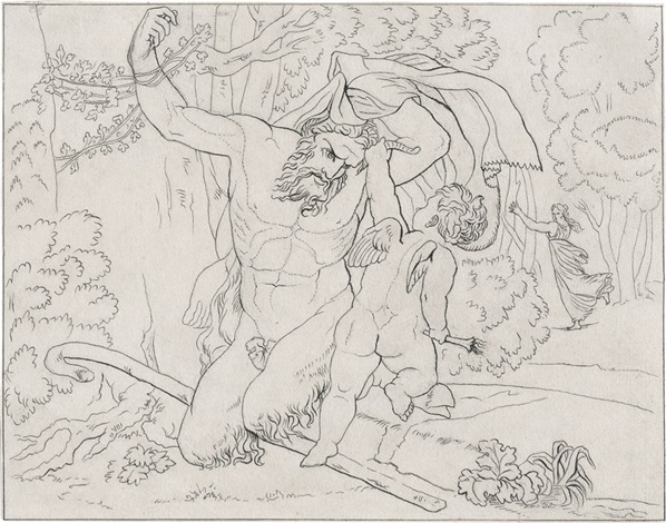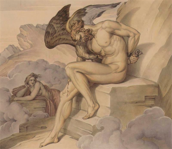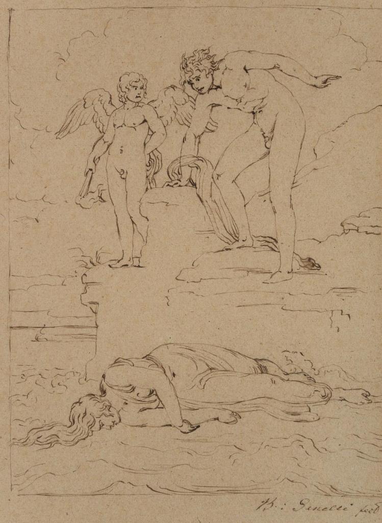 Bonaventura Genelli (Berlín, Alemania, 1798-1868) fue un pintor neoclásico italiano – la patria de sus padres – que se distinguió fundamentalmente por su labor como dibujante. Nos legó numerosos dibujos y algunos grabados en los que se aprecia su admiración por el mundo renacentista y, en particular, por Miguel Angel. Hace uso de los efectos de scorzo, tan apreciados por el artista florentino, y la anatomía de sus figuras es más creativa que realista. Sus pinturas son escasas.