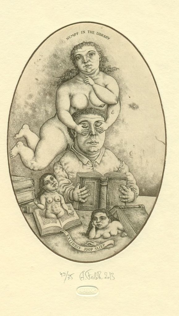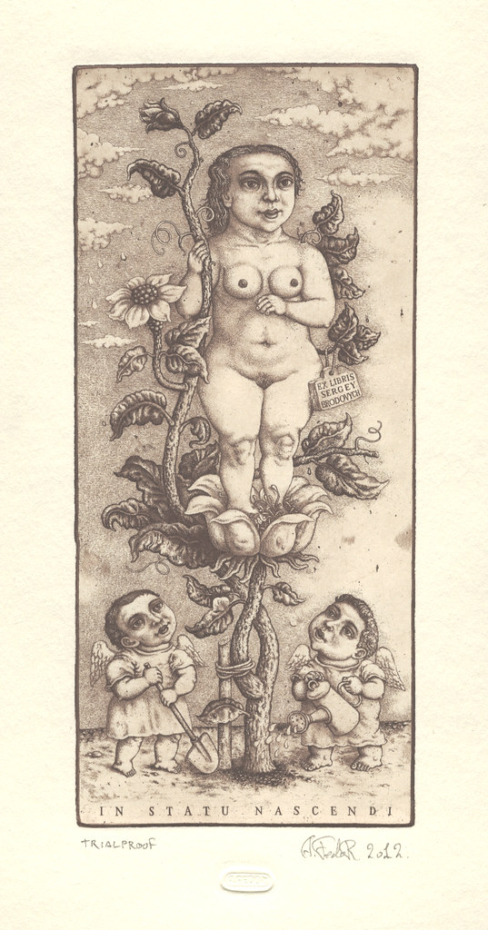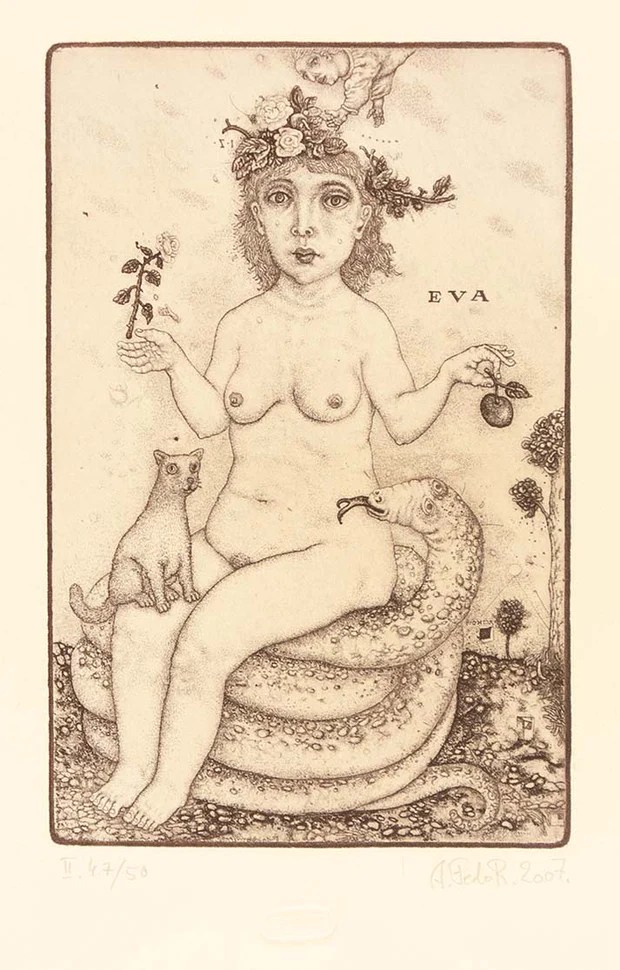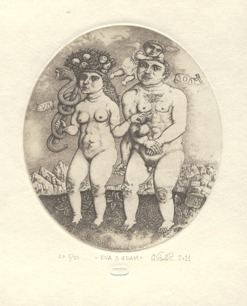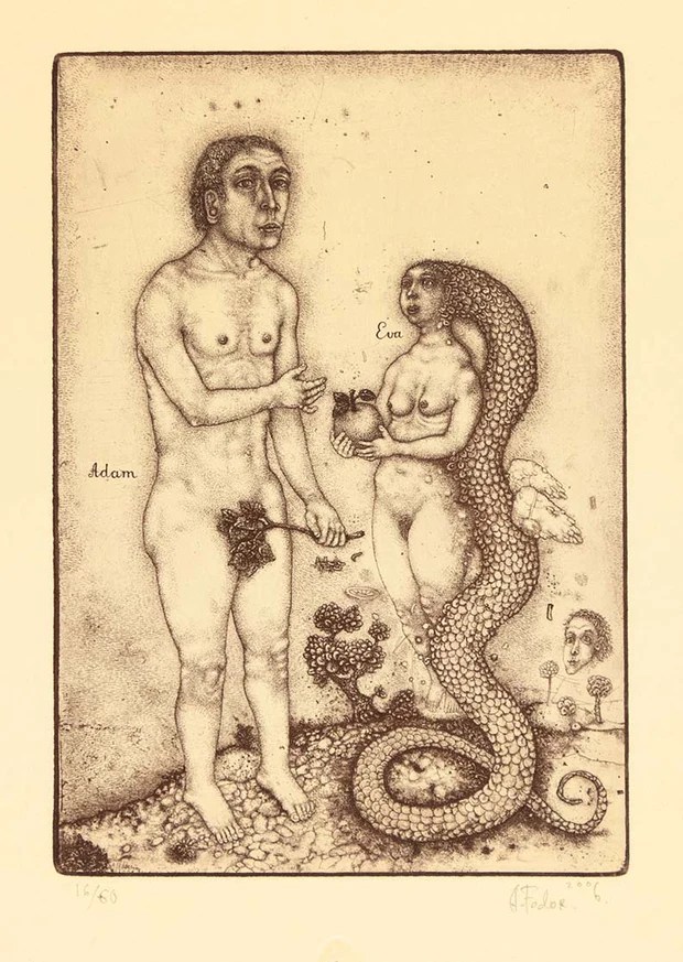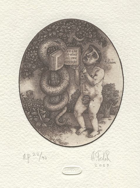 Oleksiy Fedorenko (Kyiv, Ucrania, 1961) es un grabador que parece sumergirse en el Renacimiento Flamenco a la hora de encontrar los temas y formas de expresión que le sirven para recrear un mundo fantástico, en los que las figuras del mito de Adán y Eva tienen un gran protagonismo. Una gran parte de sus obras son «ex libris».