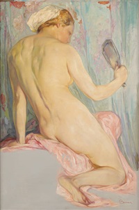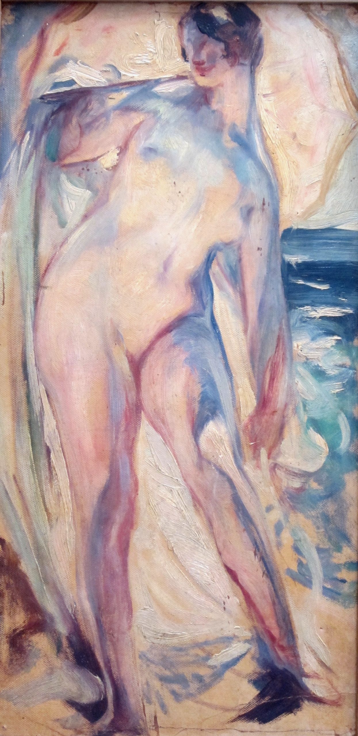Un destacado artista casi desconocido, Jules van Biesbroeck (Portici, Italia, 1873-1965), fue un pintor belga asociado al movimiento orientalista, después de sus viajes por el norte de África, especialmente por Argelia. Este estilo, sin embargo, no parece mostrarse en los desnudos que he podido localizar. En mi opinión estos se relacionan más con el modernismo-simbolismo.