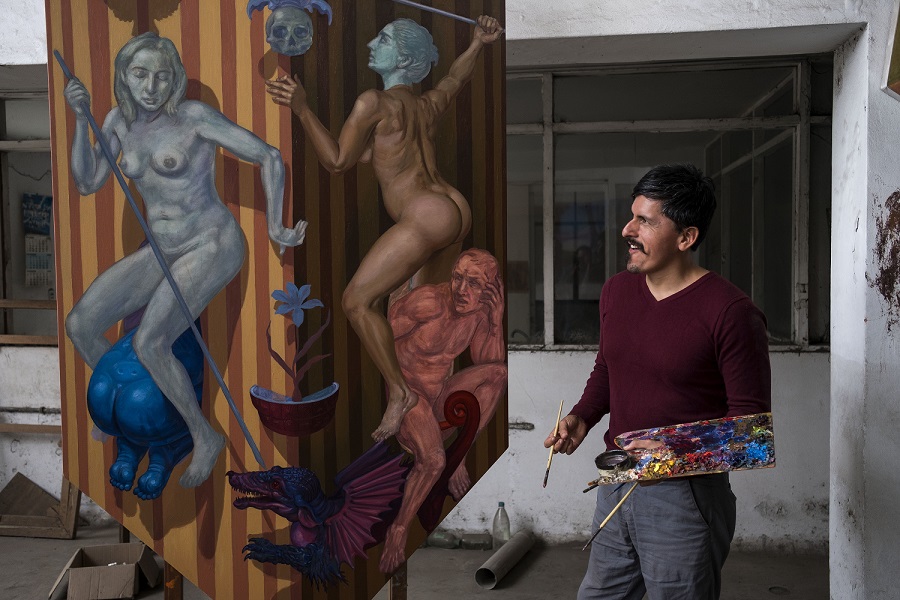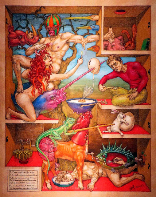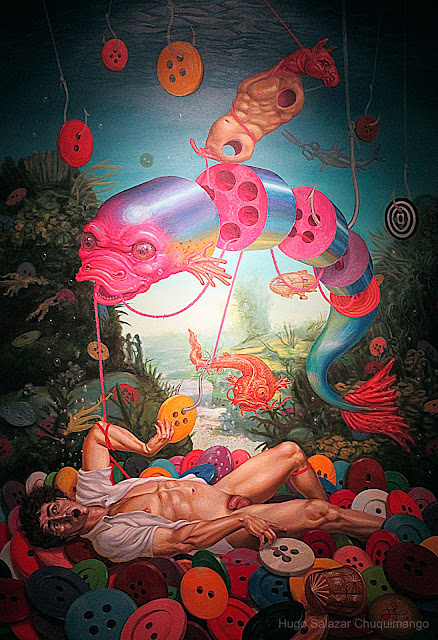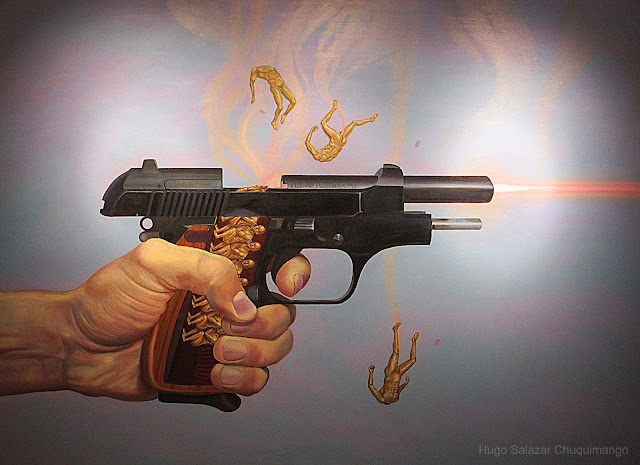 Hugo Salazar Chuquimango (Callao, Perú, 1980) es un artista que ha tenidos unos principios duros, al tener que compatibilizar su labor pictórica con la labor de vigilante. Aún así, ha ido ganando relevancia después de ganar dos importantes concursos de dibujo. El pintor comenta en El Comercio su filiación artística: