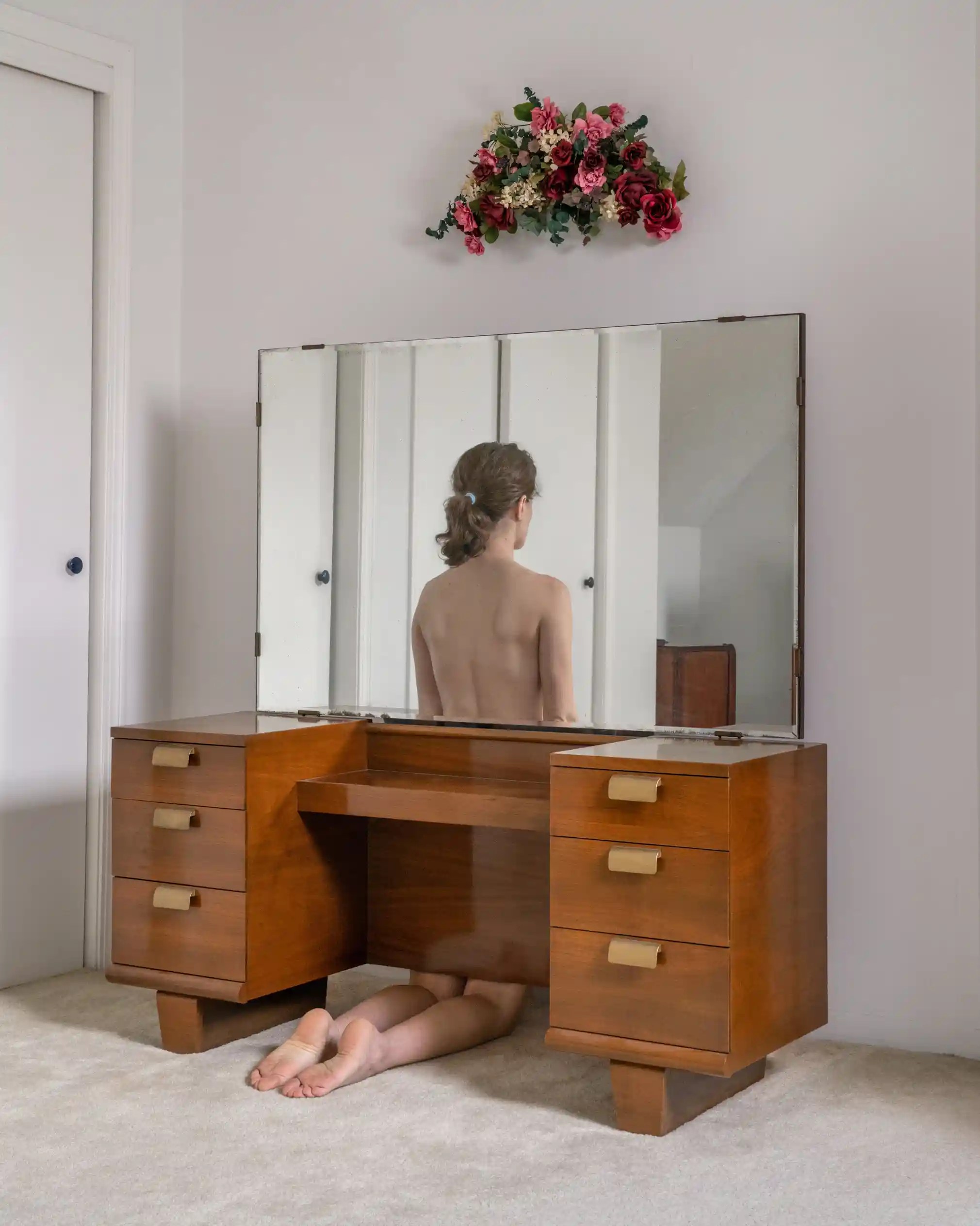 Llego a conocer a la artista Brooke DiDonato (USA, 1990) a través de la reseña de una exposición de la Fotografiska de Berlín en la que un colectivo de treinta fotógrafas presentan sus trabajos sobre el desnudo. Aunque resulta cada ves más frecuente, la visión del desnudo desde una perspectiva femenina sigue siendo minoritaria, por lo que a veces tendemos a generalizarla y encuadrarla dentro de una única e hipotética corriente feminista. Brooke DiDonato es un fotógrafa (también videoartista y autora de intervenciones) creadora de un mundo surrealista, irónico, frío y de composiciones muy cuidadas en las que aparentemente se intenta excluir cualquier interpretación sexual. Su discurso es feminista, pero no un mero panfleto, y exige en ocasiones un análisis reposado de la obra.