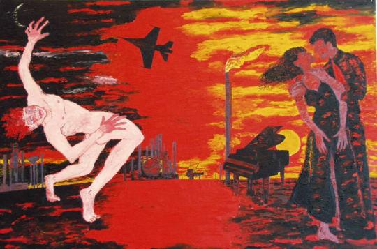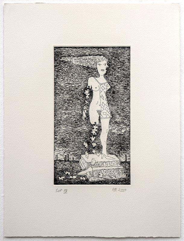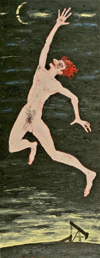 Derek Boshier (Portsmouth, Reino Unido, 1937) es uno de los artistas más destacados del Pop Art del Reino Unido, aunque experimentó con varios estilos incluyendo la abstracción. Sus pinturas abarcan la iconografía de masas británica y americana con un componente de crítica social pero, al mismo tiempo, irónico. Esta ironía y humor se aprecia bien en su serie de vaqueros desnudos.