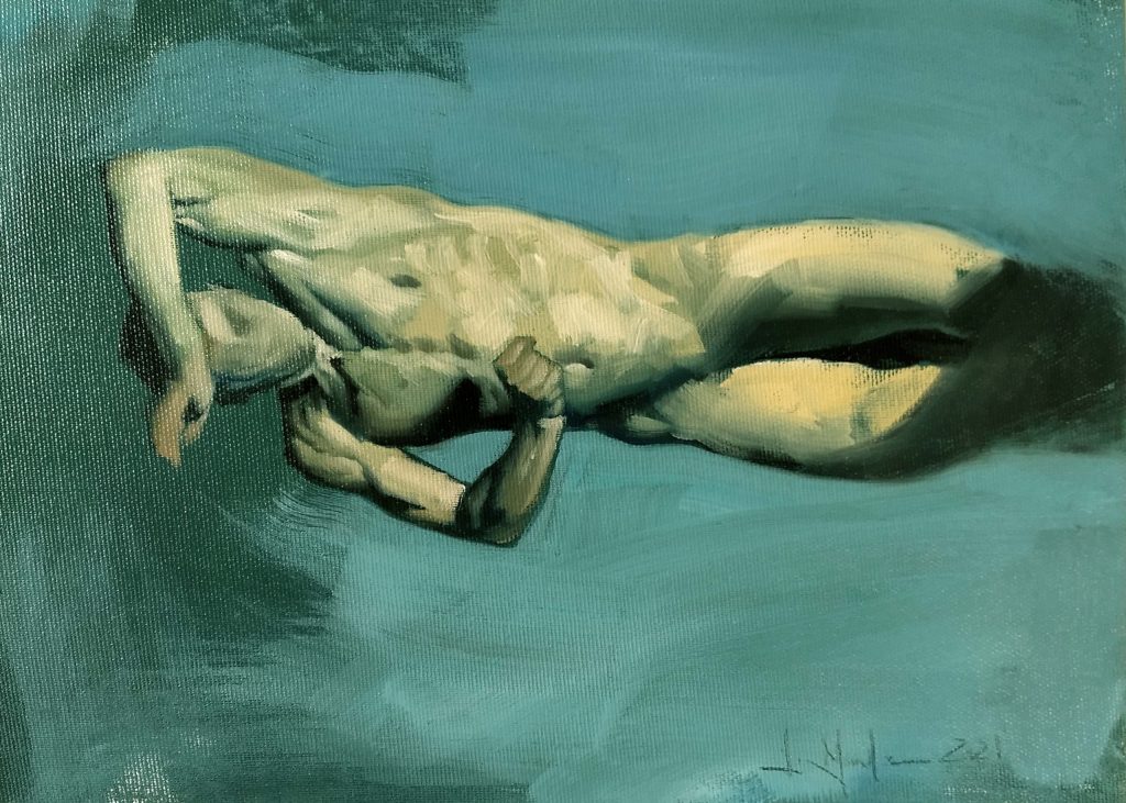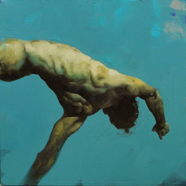 Me parece particularmente interesante su obra «Profondo blu» de la que forman parte las primeras imágenes de esta muestra.