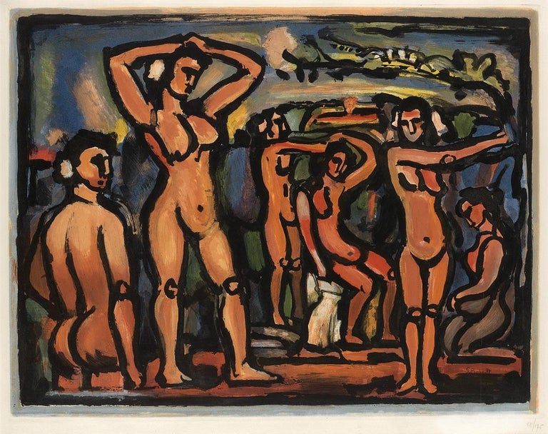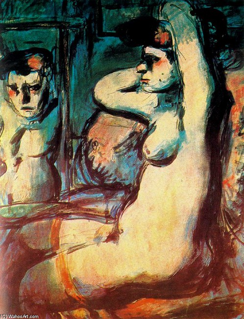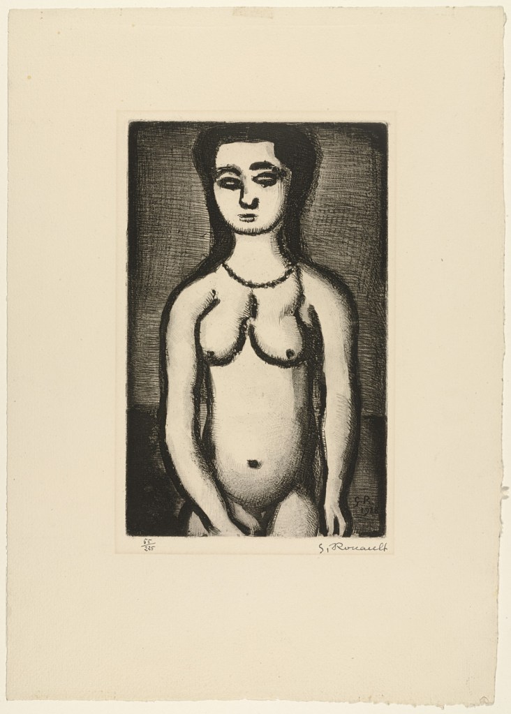 Ya he comentado a algunos artistas pertenecientes al fauvisto, movimiento que se considera fundado por Matisse, y del que he citado a André Derain y a Henri Manguin. Georges Rouault (París, Francia, 1871-1958) perteneció también a este movimiento pero en sus obras une la característica expresión del color fauvista a elementos estructurales expresionistas. Rouault fue un hombre profundamente católico que consideraba que la espiritualidad debía impregnar todas las obras artísticas aunque no fuesen estrictamente religiosas. Una espiritualidad que impregna su numerosas pinturas de tipo social e incluso sus desnudos. En algunos de estos se representa el mundo de la prostitución.
