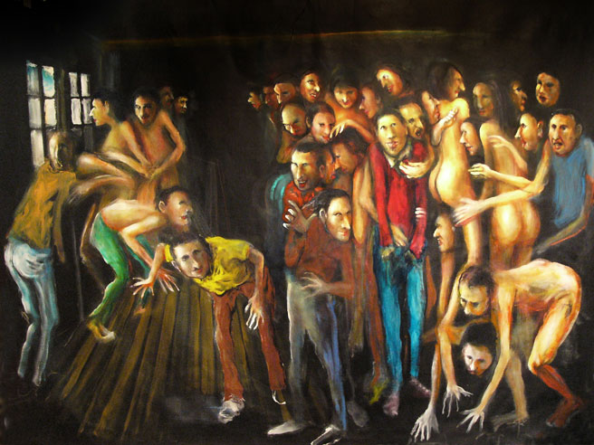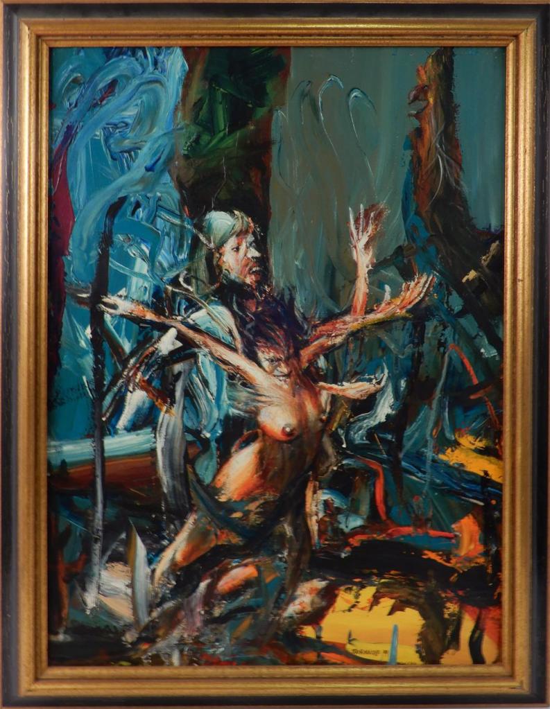 «De técnica brillante, cuya inspiración proviene del Renacimiento y del Barroco, a Stornaiolo se lo ha comparado en innumerables ocasiones con el Bosco, con Goya, o con Francis Bacon, pero también con la fuerza moralizante, corrosiva y crítica del primer expresionismo alemán de ‘Die Brücke’. Lo que ocupa el resto del cuadro es la mancha, un estilo de pinceladas gruesas y una gran autonomía del color».