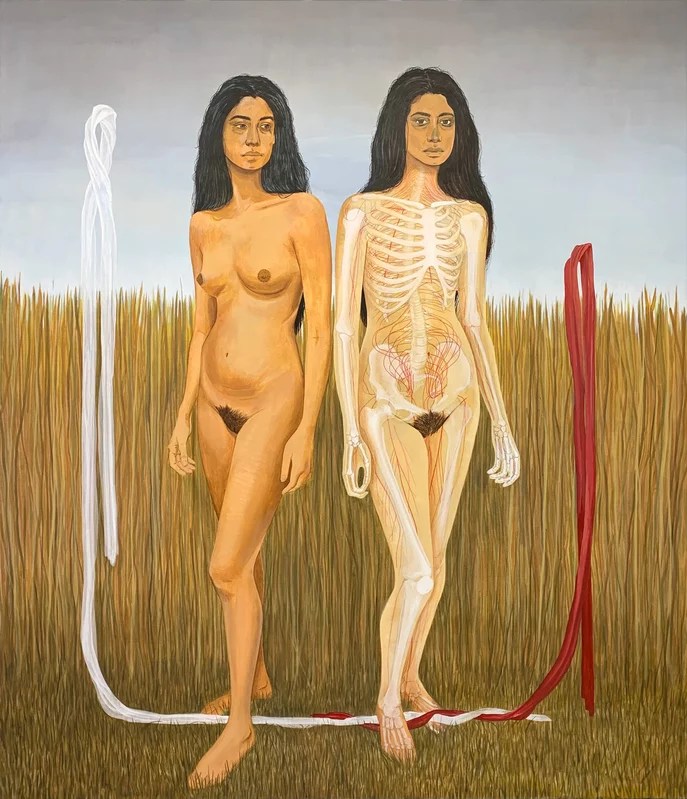 «La obra de Nadia Waheed es alegórica y autobiográfica al mismo tiempo. Sus pinturas figurativas a gran escala hacen referencia tanto a su propia experiencia vivida como a temas más amplios de la feminidad, el trauma cultural y el deseo de una identidad individual libre de convenciones, expectativas y obligaciones. Los sujetos femeninos, a menudo autorretratos, en su obra soportan claramente el peso de las presiones culturales, a menudo contradictorias, que recaen sobre las mujeres. También demuestran una interioridad tranquila o interrelaciones con otras mujeres que apuntan hacia el espacio para un yo liberado e independiente de las normas y compulsiones sociales».