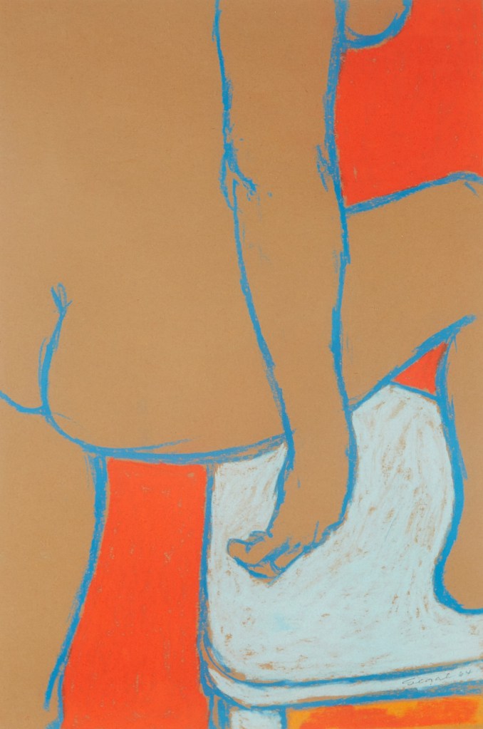 George Segal (Nueva York, USA, 1924-2000) fue un pintor y escultor vinculado al Pop Art americano. Como escultor se distinguen sus obras blancas, realizadas en yeso y gasas (como las utilizadas para las escayolas), acompañadas en ocasiones con objetos ready-made, como marcos de puerta. En sus pinturas se aprecia fuertemente las características del Pop americano: dibujo sencillo, que delimita espacios cromáticos intensos, y planaridad.