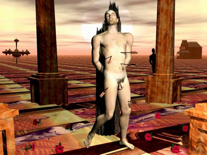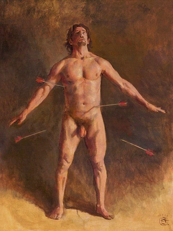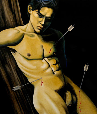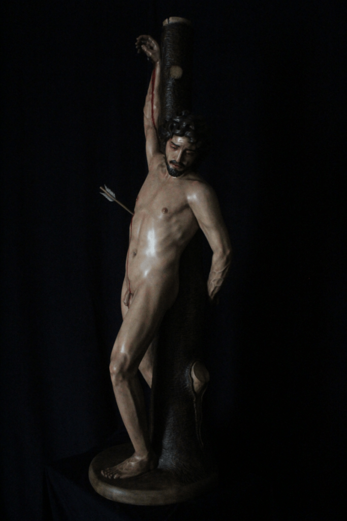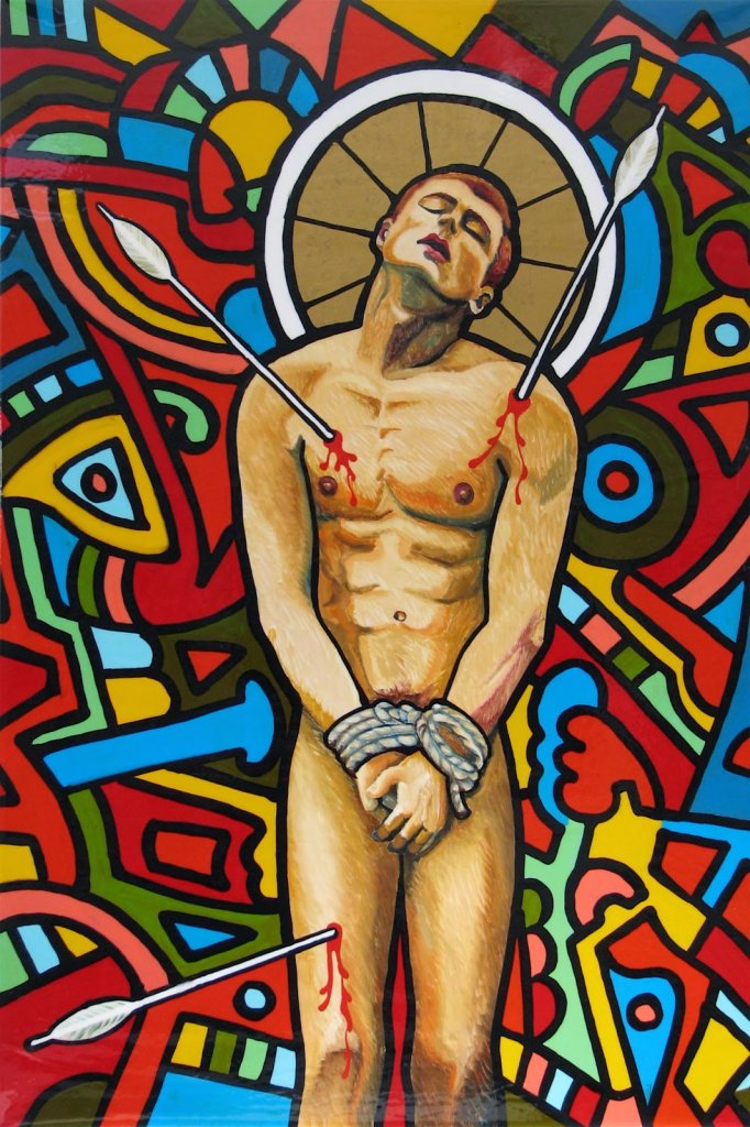 Según nos cuenta la leyenda, San Sebastián o Sebastián de Milán fue un tribuno romano que vivió en el siglo III y fue ejecutado por orden del emperador Diocleciano durante su persecución a los cristianos. La Iglesia lo ha venerado e invocado su auxilio en el caso de catástrofes como la peste. La iconografía tradicional nos muestra a un joven desnudo o semidesnudo, eventualmente andrógino, atravesado por flechas. Sin embargo, cuando murió, ni era joven ni lo hizo por culpa de ninguna flecha. Era un hombre corpulento, como correspondía a un capitán de la guardia pretoriana y, como diríamos ahora, pintaba canas. La sofisticación de su aspecto tuvo lugar durante el Renacimiento que hizo que los artistas emulasen las formas heroicas masculinas del arte griego y romano. También se nos habla que fue condenado a morir asaetado pero, al no lograr que muriese de este modo, fue finalmente apedreado. Esto claro, no tiene el mismo glamour para la representación artística y no se tomó en cuenta. En cualquier caso, si ha habido un santo asociable al desnudo, sin duda éste es San Sebastián. ¿Por qué su asociación al mundo gay?. Posiblemente el factor de haber sido atacado por flechas estando desnudo haya favorecido este acercamiento. Quizás también la representación que hizo en el siglo XVI Guido Reni (supuestamente homosexual) haya también contribuido a esta asociación. El desnudo casi total (salvo el paño de pureza) y la expresión de éxtasis,a la que siempre se le ha atribuido un componente erótico – sin entrar en consideraciones psicoanalíticas sobre el significado de la única flecha que atraviesa su cuerpo-, refuerzan esta opinión.