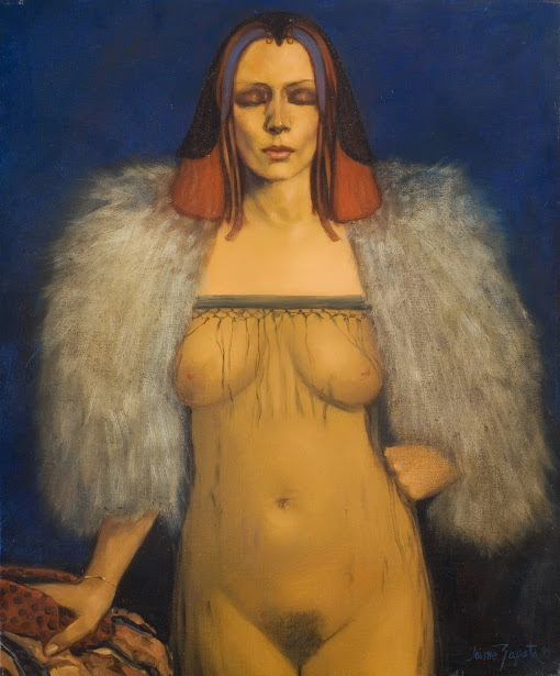 La obra del artista ecuatoriano, afincado en Francia, Jaime Zapata (Quito, Ecuador, 1957) es figurativa. Un realismo que se muestra con colores intensos y que se ve acompañado, ocasionalmente, por elementos mágicos o fantásticos. Extraordinario dibujante, muestra en sus pinturas, con una técnica heredera del renacimiento, un cierto hiperrealismo muy cromático. Su mundo es casi exclusivamente femenino y en el mismo asoman, puntualmente, evocaciones al arte europeo del que es un gran conocedor.
