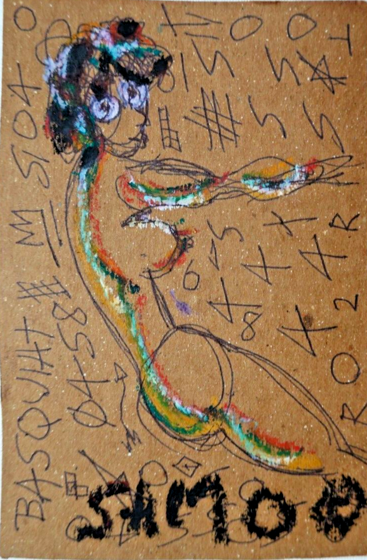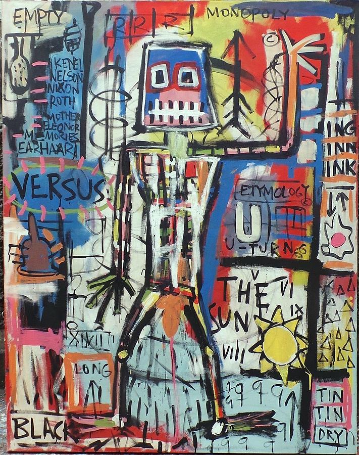 De carácter rebelde e inconformista, Basquiat se inició realizando graffitis en casas abandonadas de Manhattan, firmando sus obras con el acrónimo SAMO («Same Old Shit», «la misma mierda de siempre») que podemos inscribir dentro del arte conceptual. Su producción evoluciona del primitivismo al neo-expresionismo. El grado de abstracción de su obra dificulta indicar, en muchos casos. si sus figuras se muestran desnudas o no.