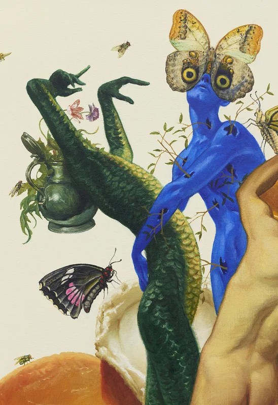 «Influenciados por los maestros holandeses como Hieronymus Bosch y William Kalf, las pinturas de Matthew Hansel crean mundos del cielo y del infierno, remezclando estilos artísticos e ideas exóticas desde las profundidades de su imaginación desenfrenada. Los universos imaginados por Hansel se atraen y se repelen en igual medida, ya que combinan asombrosas habilidades para pintar al óleo con una mente irracional. Dejándose seducir por sus demonios, Hansel crea obras de arte que nos permiten imaginar con seguridad cosas que normalmente nos asustan o repugnan, como la muerte y la muerte. monstruos, al mismo tiempo que considera lo que hay de contemporáneo en estos feos vintage. La carrera del artista comenzó recreando pinturas maestras holandesas para escenarios de películas, y esta experiencia continúa influyendo en su trabajo, ya que todas sus pinturas actúan como un homenaje a la historia del arte. Hansel se describe a sí mismo como un hijo del cambio de un mundo analógico a uno digital, y su obra es una consecuencia visual de este desarrollo».
