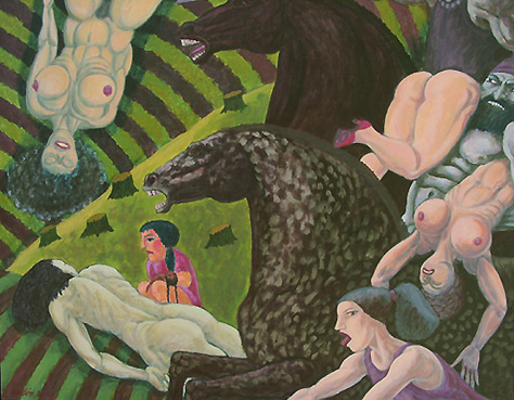 Augusto Rendón Sierra (Medellín, Colombia, 1933-2020) es una de las figuras más destacadas del arte sudamericano contemporáneo y una de las figuras más sobresalientes del Expresionismo Colombiano. Especializado en pintura mural y grabado, en su temática destaca la violencia y el erotismo. De un comentario de Oscar Cerón en Las2Orillas entresaco lo siguiente: