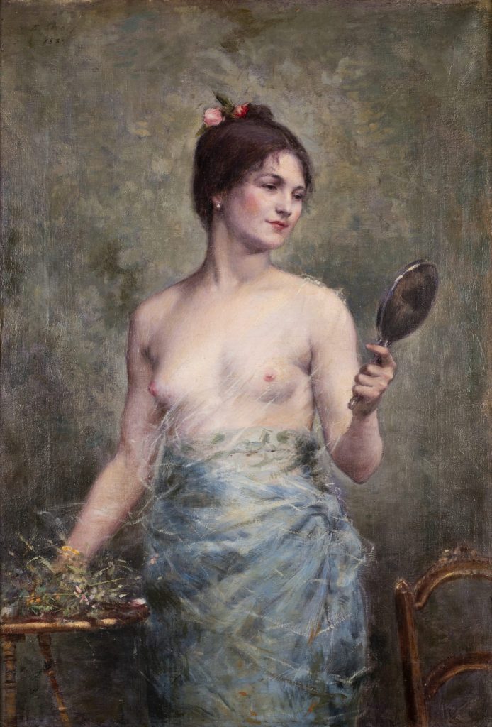 De Eduardo Sívori (Buenos Aires, Argentina, 1847-1918), nos dice Wikipedia que con Ernesto de Cárcova, introdujo el realismo pictórico francés de finales del siglo XIX en la Argentina. Conoció de primera mano este estilo gracias a su estancia en París entre 1873 y 1876. Volvió a esta ciudad en 1882 para tomar clases de Jean-Paul Laurens. Fue fundamentalmente un paisajista, pero disponemos de algunos de sus retratos desnudos, resultando muy conocida su obra «El despertar de la criada»