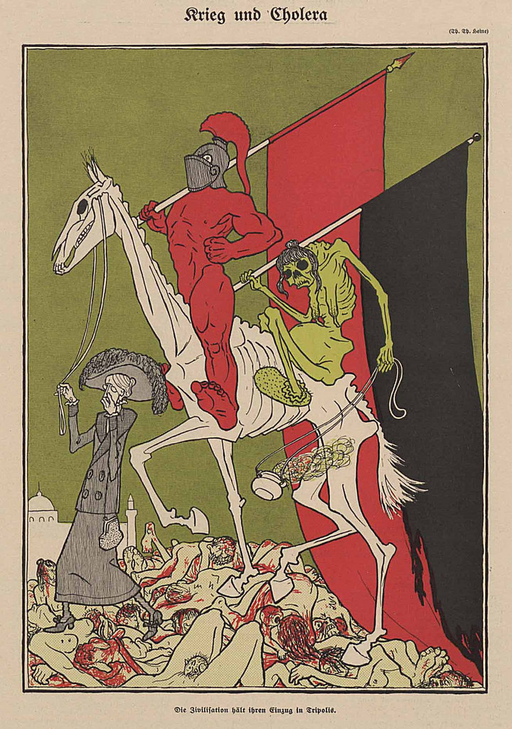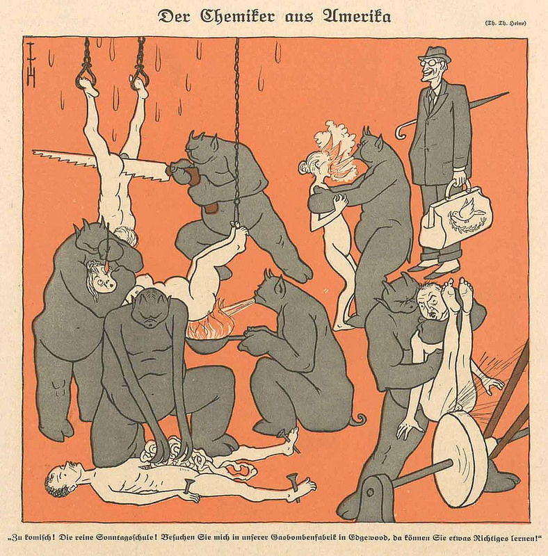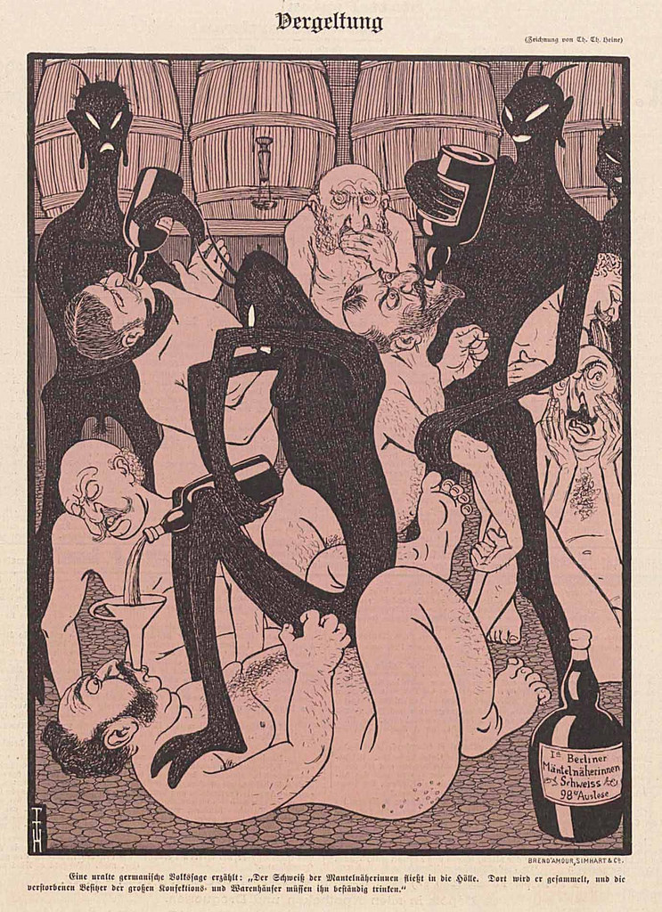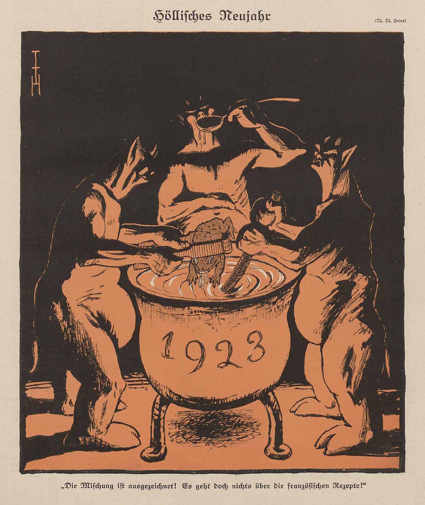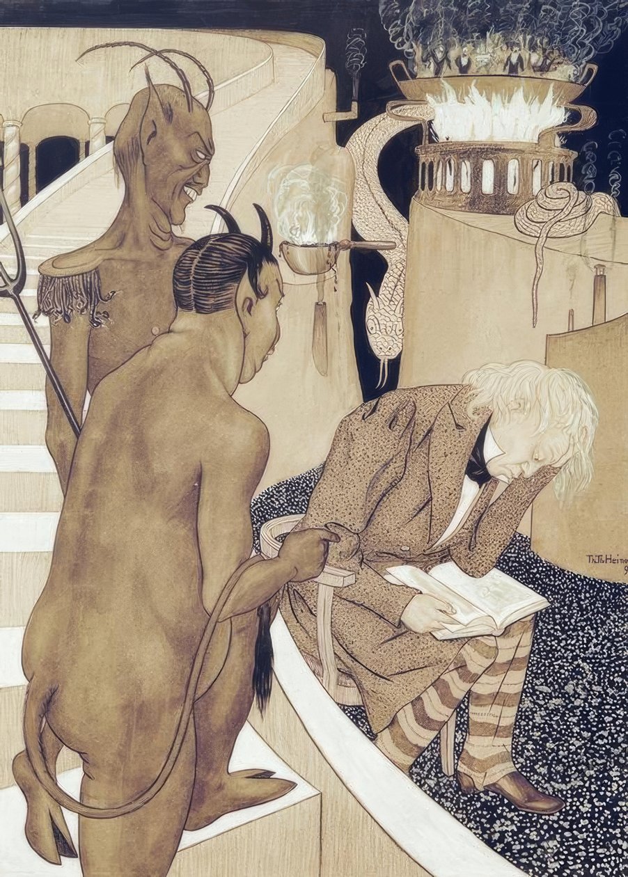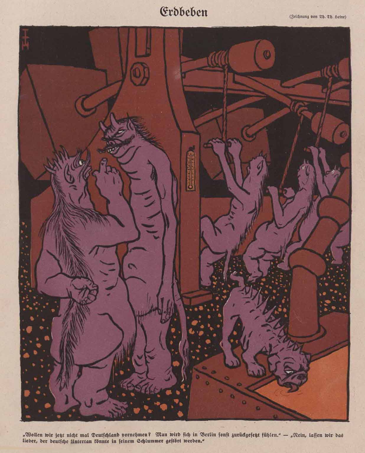 Thomas Theodor Heine (Leipzig, Alemania, 1867-1948) fue un pintor, dibujante, ilustrador y caricaturista alemán que, a través de la revista Simplicissimus, realizó una fuerte crítica social y política. Sus ataques a la monarquía le valieron seis meses de prisión en 1898. En 1933 huyó de Alemania y se estableció primero en Praga y luego en Oslo y Estocolmo. Su estio muestra las influencias de Toulouse-Lautrec, Aubrey Beardsley, los grabados japoneses, y el estilo decorativo conocido como Jungenstill.