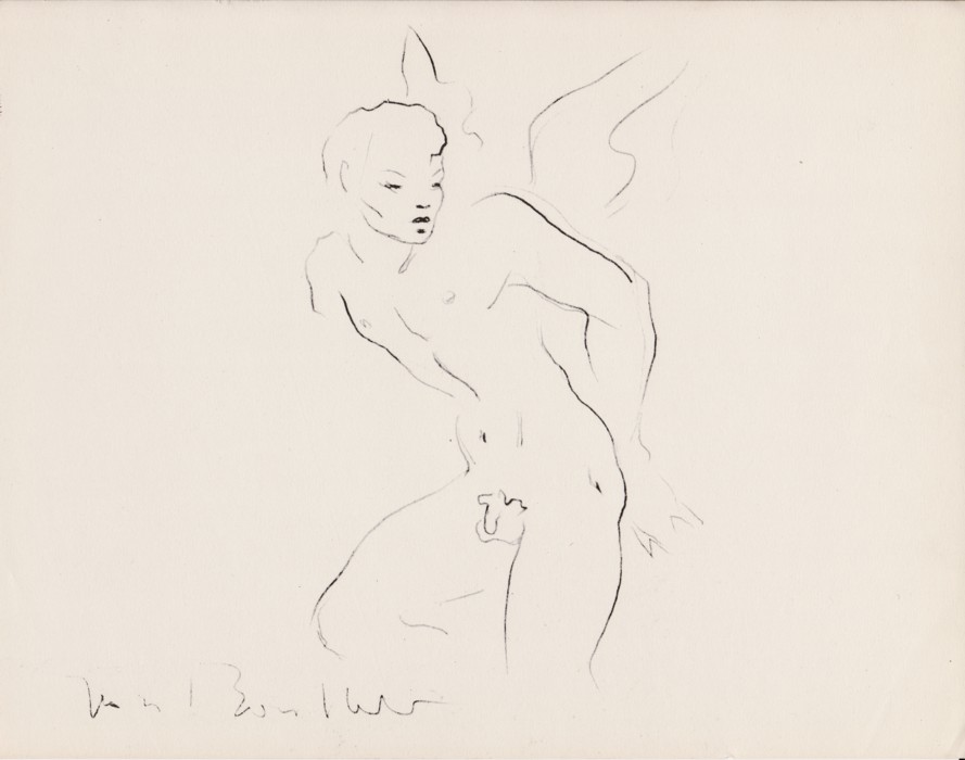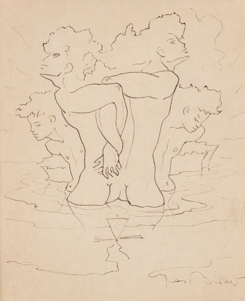 Jean Boullet (Neuilly-sur-Seine, Francia, 1921-1970) fue un artista multifacético que realizó pinturas pero también fue un escritor y crítico cinematográfico. Aquí voy a destacar su notable participación como dibujante e ilustrador. Abiertamente homosexual, sus obras tienen un fuerte carácter homoerótico y se inspiran en el estilo de Jean Cocteau.