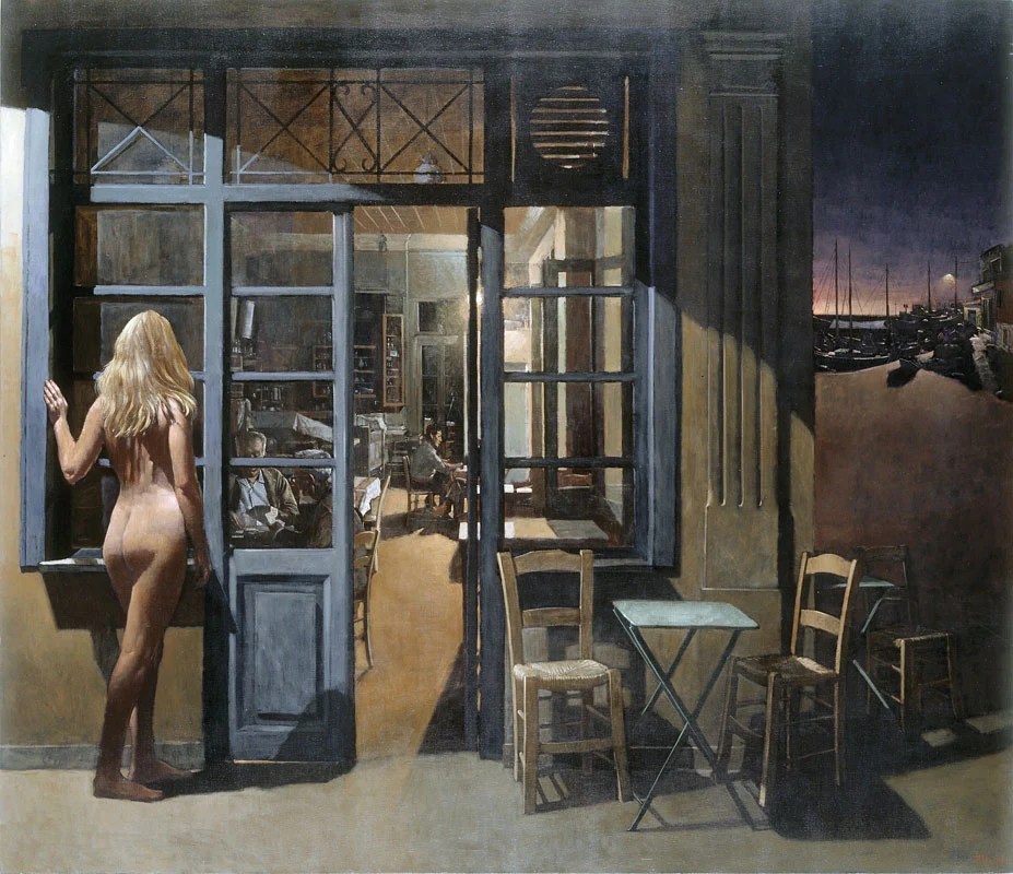 Pavlos Samios (Atenas, Grecia, 1948-2021) fue un pintor y profesor griego cuya obra estuvo influenciada por Yannis Tsarouchis, Yiannis Moralis y Manos Hatzidakis. La crítica de este artista, que vive y trabaja en Paris, comenta que su obra revela una visión simbólica y metafísica. Yo quiero destacar ese carácter «ausente» de esas figuras que intentan ocultarnos sus miradas, incluso en los casos en los que se nos muestran frontalmente.