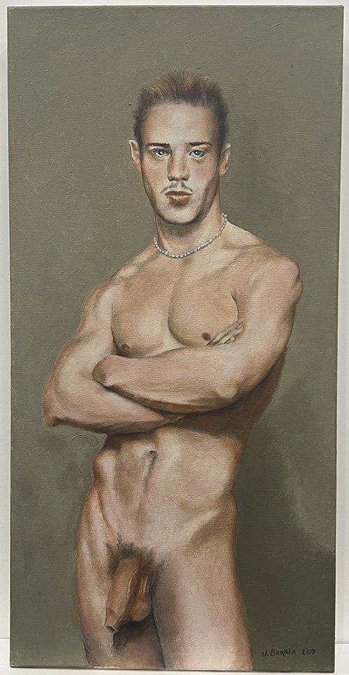 Jack Barkla (Minnesota, USA, 1940-2023) fue un pintor, dibujante, escultor y, fundamentalmente, un diseñador. En este último aspecto debemos reseñar su importante labor como diseñador de ambientes y de vestuarios teatrales. Sus desnudos son masculinos y homoeróticos, elaborados con un estilo realista en el que se incorporan ocasionalmente elementos surrealistas. También pintó retratos al modo cubista-futurista.