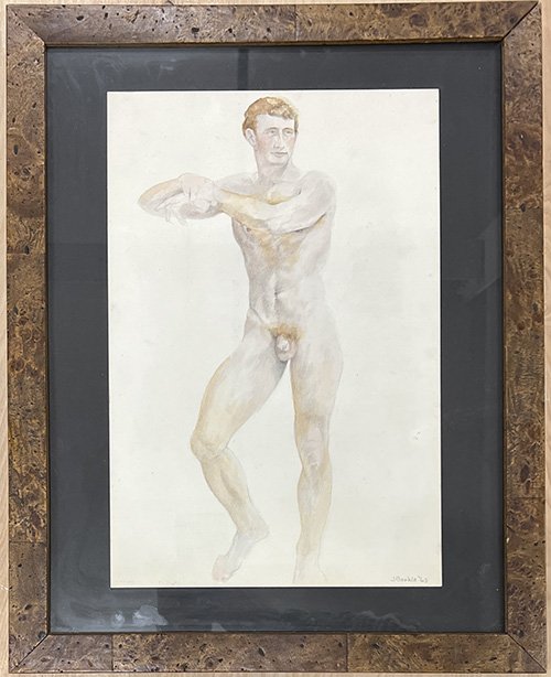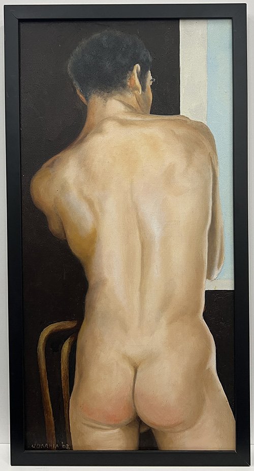 Jack Barkla (Minnesota, USA, 1940-2023) fue un pintor, dibujante, escultor y, fundamentalmente, un diseñador. En este último aspecto debemos reseñar su importante labor como diseñador de ambientes y de vestuarios teatrales. Sus desnudos son masculinos y homoeróticos, elaborados con un estilo realista en el que se incorporan ocasionalmente elementos surrealistas. También pintó retratos al modo cubista-futurista.