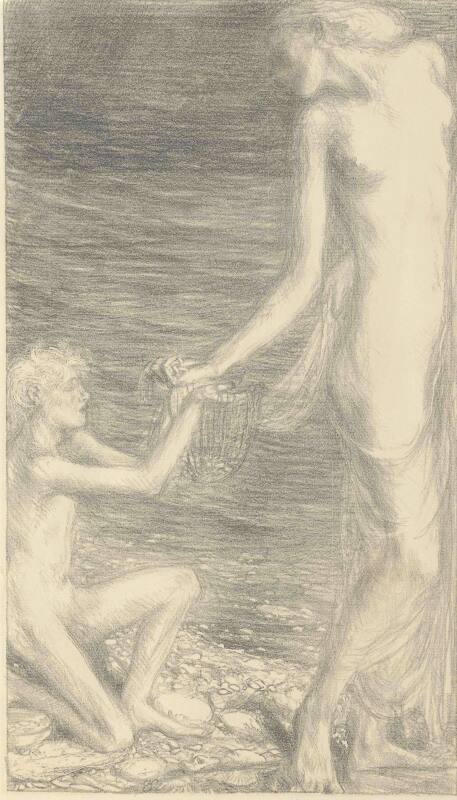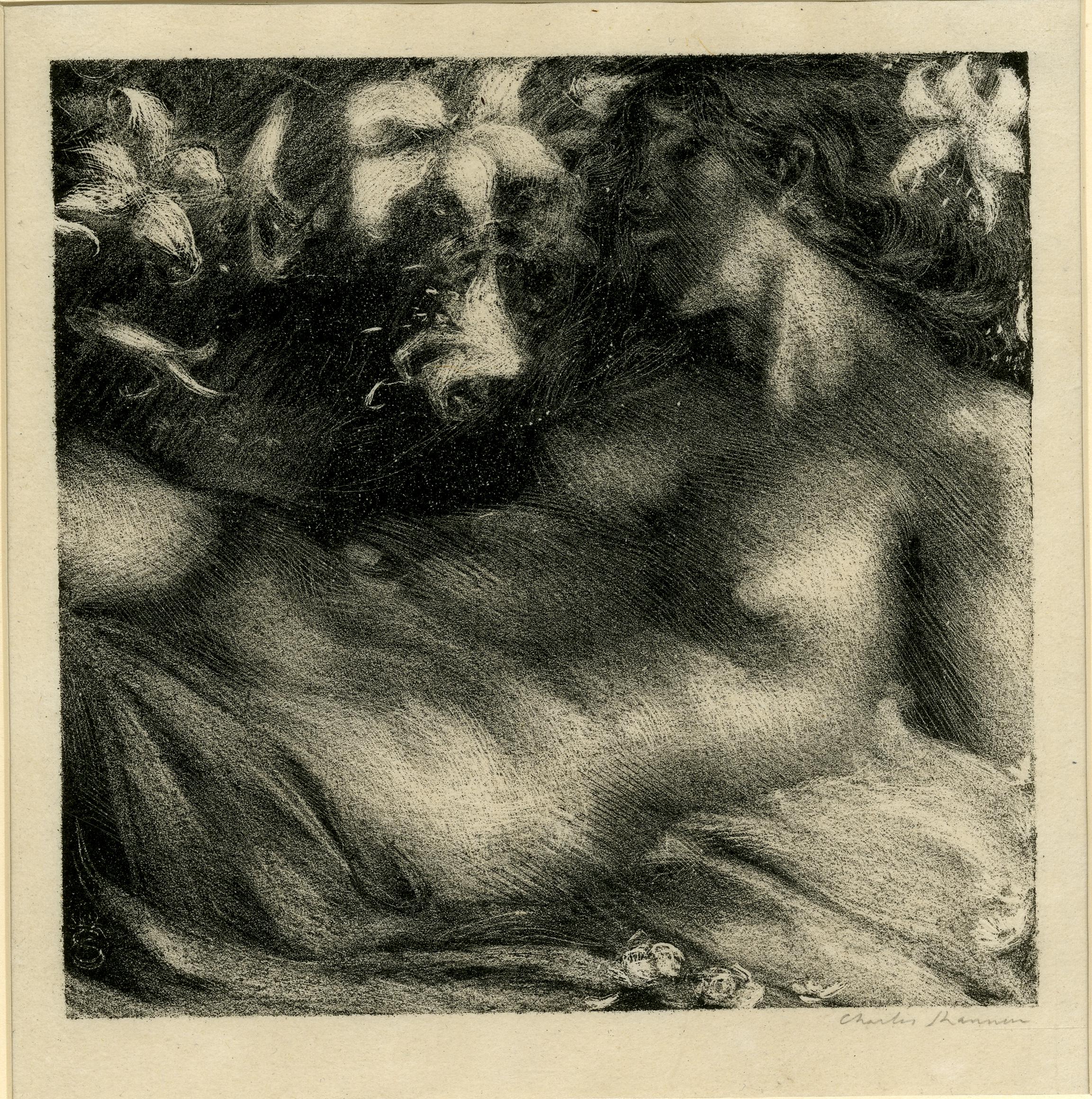 Como indicaba en la entrada previa, Charles Haslewood Shannon (Sleaford, Lincolnshire, Reino Unido, 1863-1937) nos legó también una importante producción de dibujos y litografías. En algunos podemos apreciar los mismos temas y composiciones utilizados en sus pinturas.