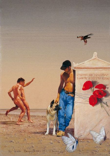 Michalis Markroulakis (Ermoupoli, Grecia, 1940) es un artista que ha trabajado, fundamentalmente, como escenógrafo y diseñador, pero también como pintor. A este respecto debo mencionar que fue alumno de Yannis Tsarouchis.
