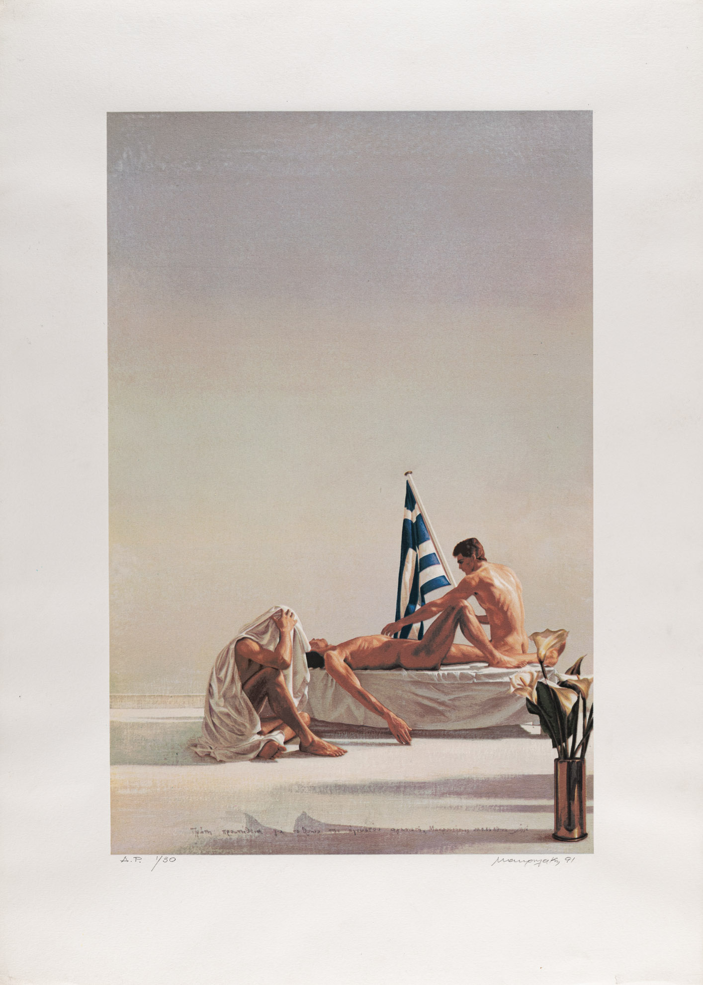 Michalis Markroulakis (Ermoupoli, Grecia, 1940) es un artista que ha trabajado, fundamentalmente, como escenógrafo y diseñador, pero también como pintor. A este respecto debo mencionar que fue alumno de Yannis Tsarouchis.