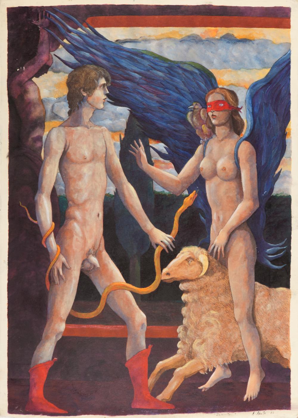 Alberto Abate (Roma, Italia, 1946-2012), original y destacado artista italiano, se formó en la Academia de Bellas Artes de Catania y luego en la de Roma. Fue miembro del movimiento estético conocido como Anacronismo que, según leemos en Wikipedia: