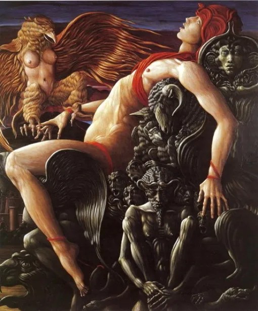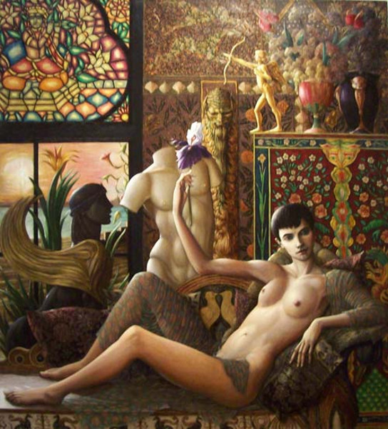 Este artista mezcla temas y tratamientos simbólicos y fantásticos con personajes mitológicos, raramente tratados en el mundo contemporáneo.