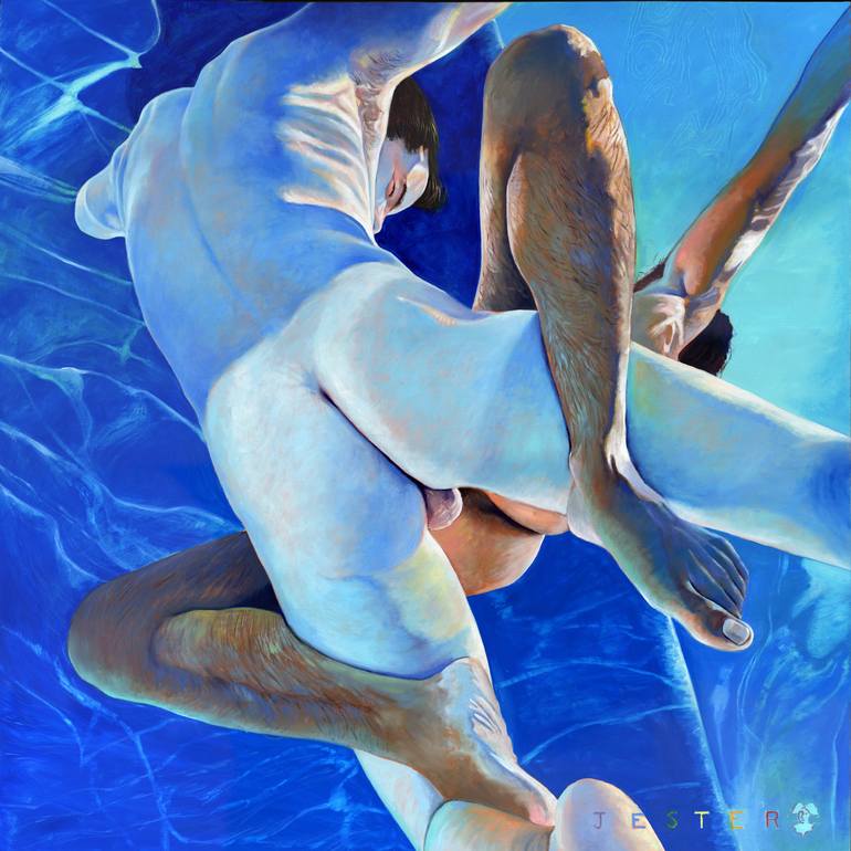 «Según recuerda, le gustaba nadar de adolescente, pero lo que lo atrajo de las piscinas fue la forma en que aíslan los cuerpos del sonido, el movimiento e incluso la gravedad, creando un grupo de personas que se convierten en su propia comunidad, aunque sea por un momento, en otro «mundo» con sus propias reglas de tiempo, espacio y color. Así ve Jester a la comunidad gay: separada, pero al mismo tiempo parte de un mundo más grande».