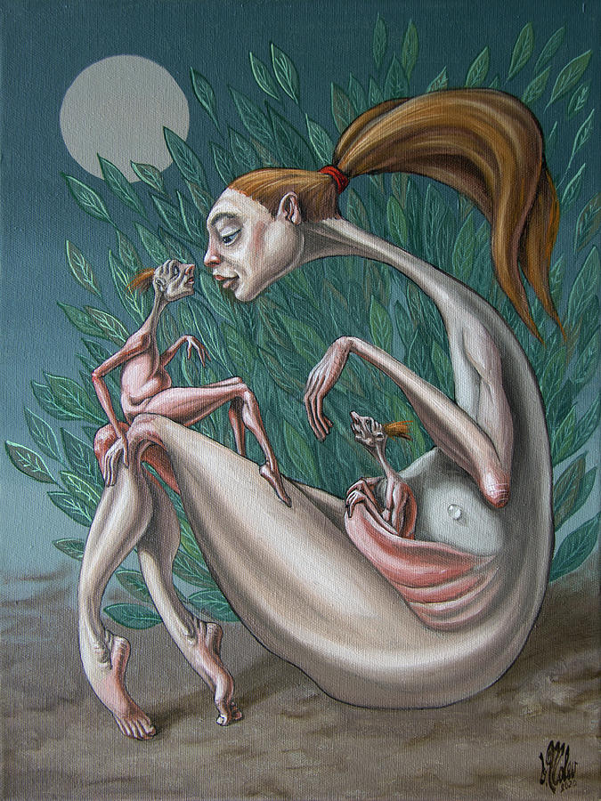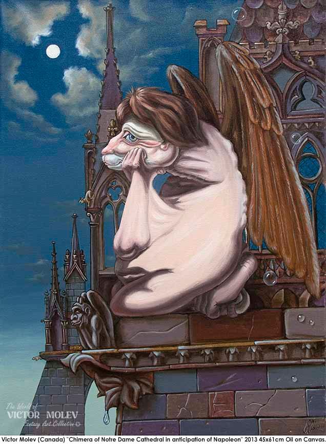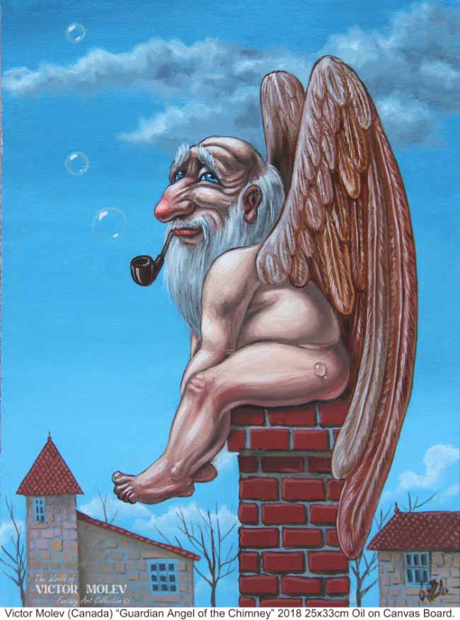 Victor Molev (Nizhni Nóvgorod, Rusia, 1955) es un artista canadiense artífice de una obra fantástica, con elementos neo-pop, y fuertemente influenciada por el surrealismo, especialmente por Dalí, cuyas ilusiones ópticas («tromp d’oeil») aparecen en muchas de sus escenas-retrato. Huyó desde un principio del Realismo Objetivo oficial y se sumergió en ese mundo mágico de Dalí, Max Ernst, René Magritte o M.C. Escher. Enanos, gnomos o animales antropomorfos, soportan en gran medida sus escasos desnudos, pero también se ven retratados algunos personajes del mundo contemporáneo.