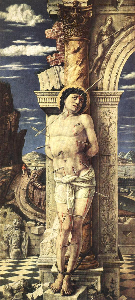 Igualmente sus tres pinturas sobre San Sebastián, en mi opinión con una gran influencia del gótico (pese a las columnas grecorromanas), y que empiezan a perfilar la iconografía de este Santo, al que se le solicitaba su intermediación contra la peste y que terminará relacionado con el mundo gay: