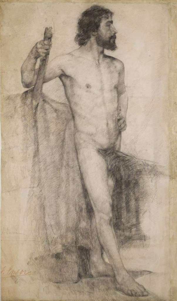 Evidentemente, no hay desnudos en esta obra. La muestro porque nos sirve como ejemplo más representativo del estilo de este artista, que no es el que les voy a mostrar aquí. El desnudo, en la pintura de James Ensor, se muestra en obras de composición aún muy realista: