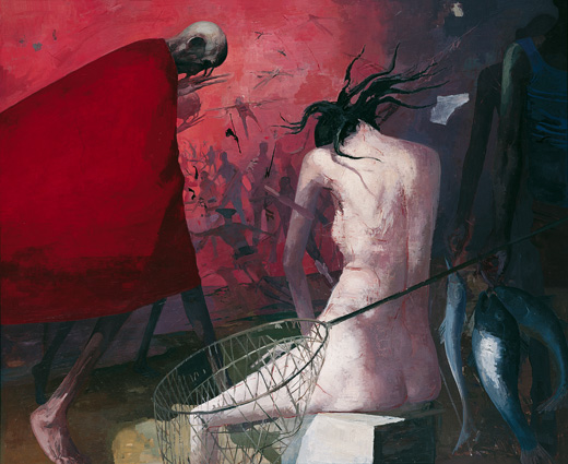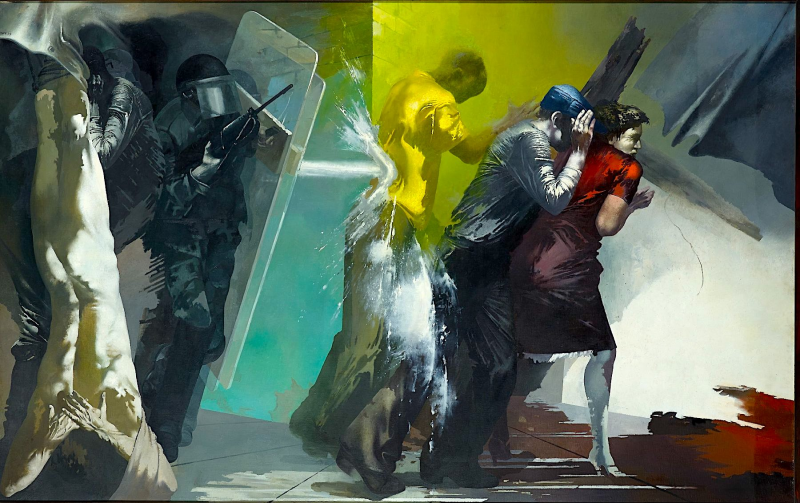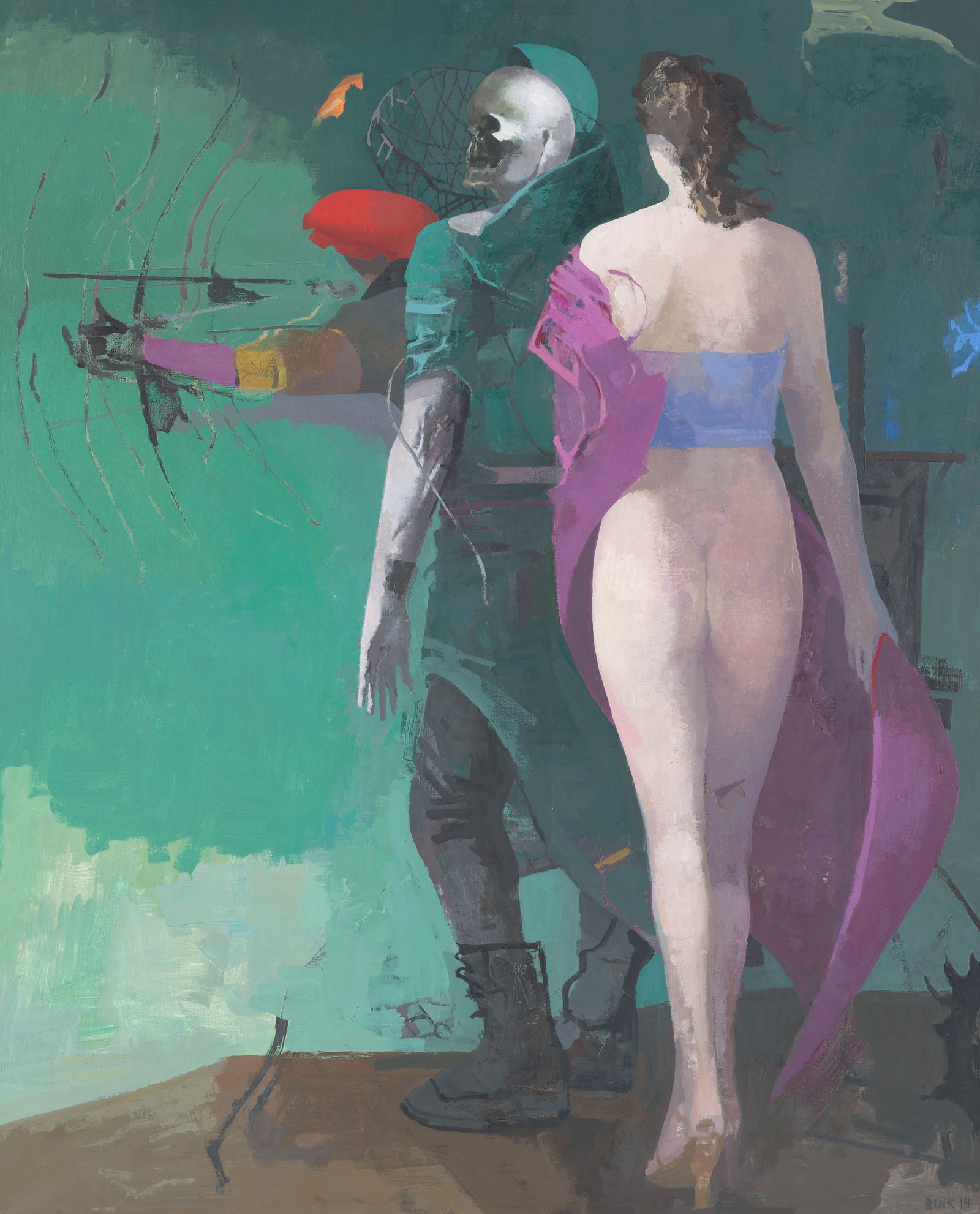 Arno Rink (Schlotheim, Alemania, 1940-2017) es uno de los artistas alemanes más destacados. Miembro de la segunda generación de la Escuela de Leipzig, su obra se mantiene fiel al realismo alemán de la misma, aunque en ocasiones puede aproximarse un poco a la abstracción. Con imágenes coloristas y un dibujo de contornos nítidos, fusiona el expresionismo alemán con el realismo socialista y tiene incluso toques surrealistas.