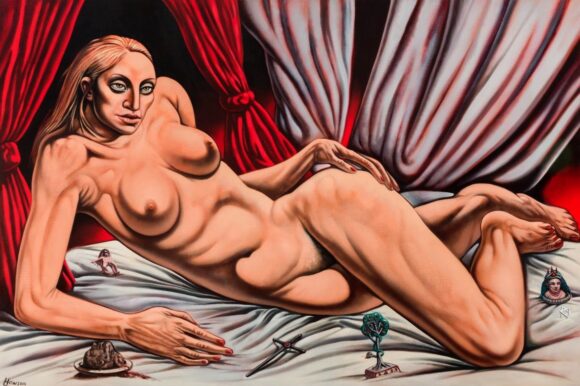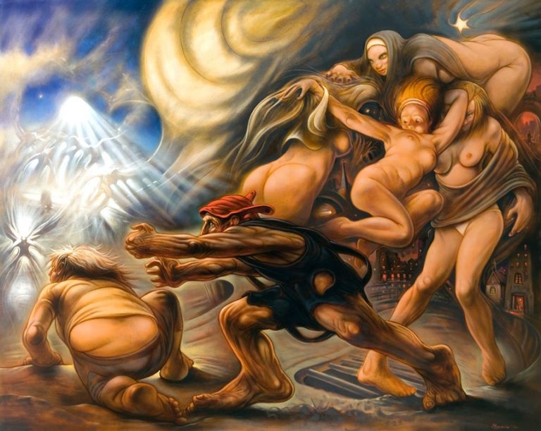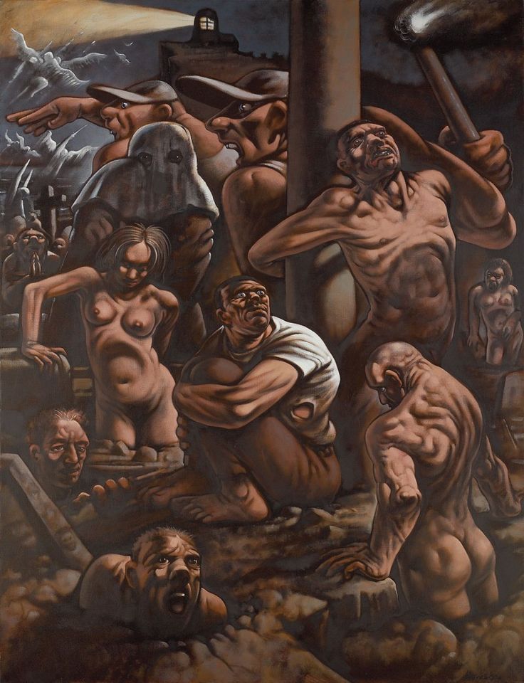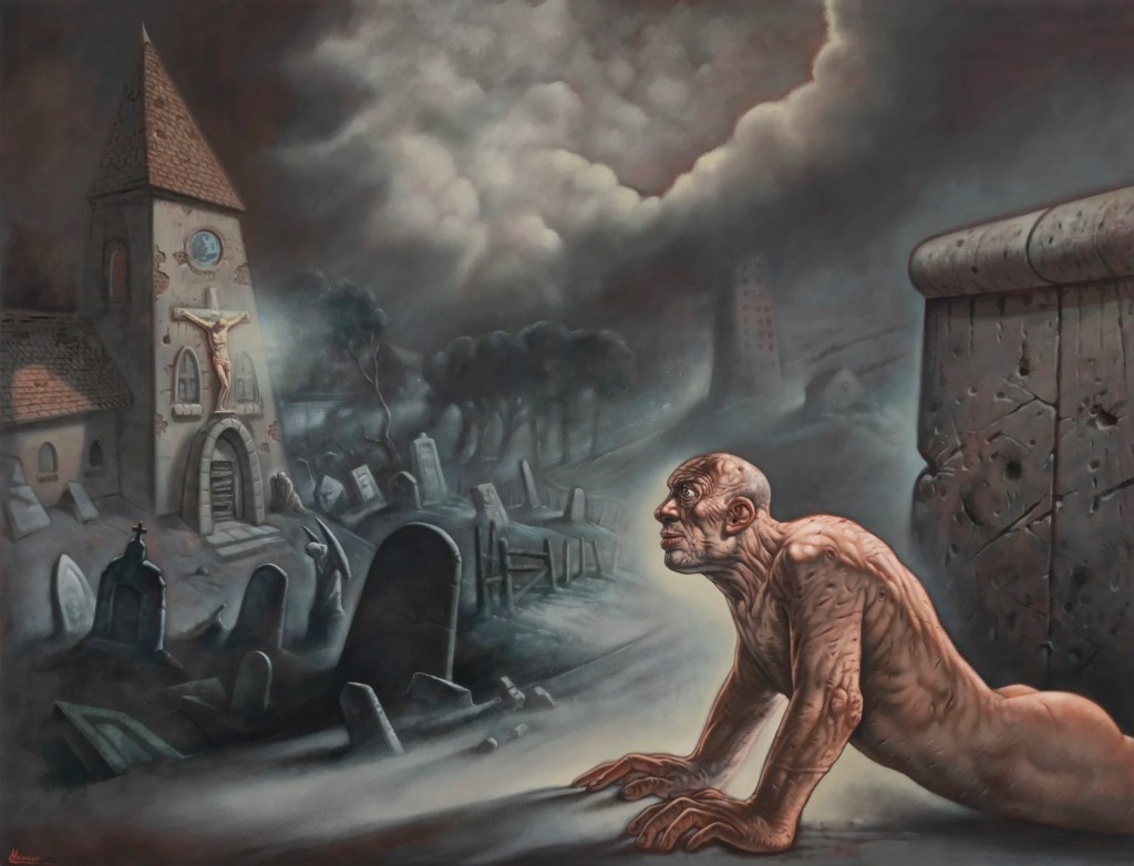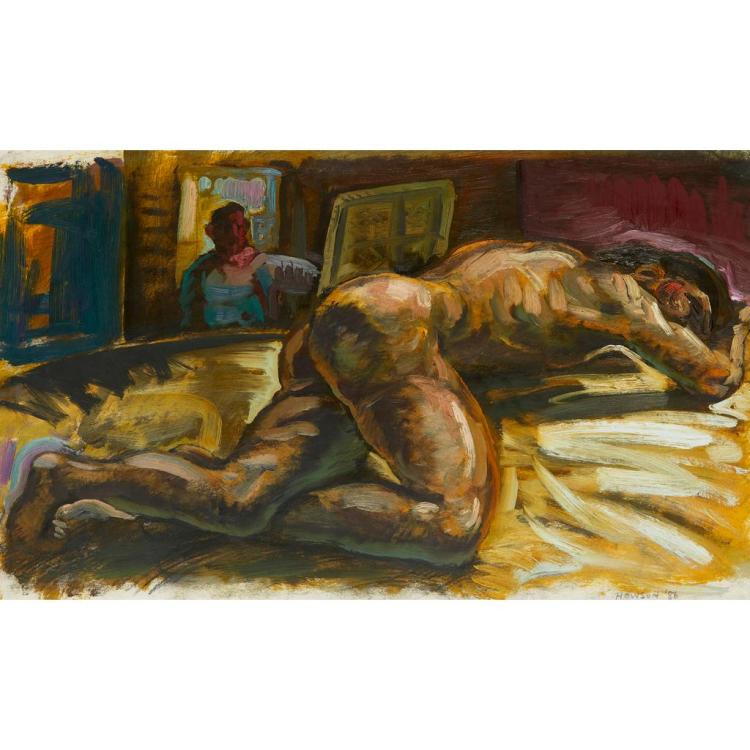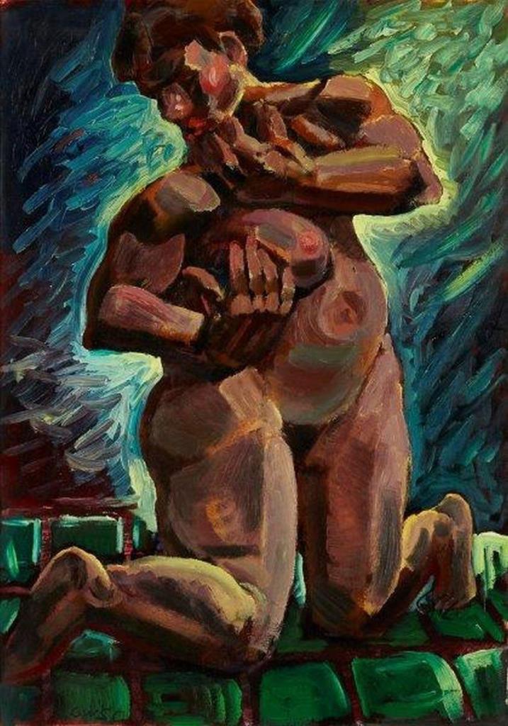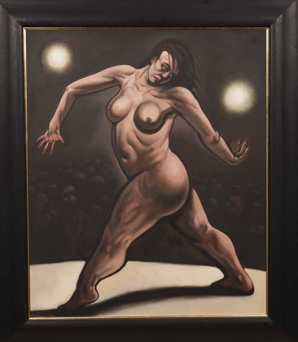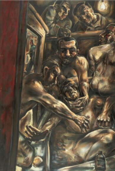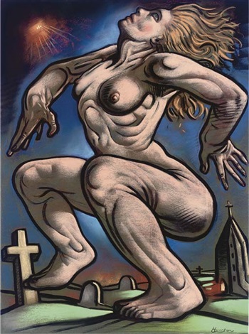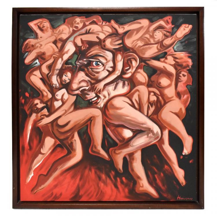 Peter Howson (Londres, Reino Unido, 1958) es un artista escocés contemporáneo formado en la Glasgow School of Art y cuya obra refleja una fuerte influencia de Francis Bacon y de Johannes Grützke. Sus personajes son voluminosos y musculados, algo caricaturescos, y reflejan, en general, una idea de fuerza y ocasionalmente, de violencia. El hecho de haber trabajado como corresponsal en la guerra civil de Bosnia puede permitirnos comprender algo mejor su obra. Una dureza expresionista que ni siquiera excluye a sus retratos femeninos.