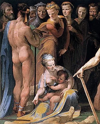Domenico Beccafumi (Monteaperti, Italia, 1486-1551), también conocido como «El Mecarino» o «Il Mecherino» – haciendo alusión a un antiguo maestro (Giovanni Mecheri) -, fue un destacado pintor, escultor, dibujante y grabador. Figura destacada del manierismo toscano, se vió influido en una primera etapa por artistas como Perugino, Signorelli, Piero di Cosimo o Giovanni Antonio Bazzi (Sodoma). Posteriormente, se aprecia el ejemplo ejercido por la pintura de Rafael y Miguel Angel. Como es habitual, me ciño aquí a una muestra de su desnudos. Un comentario amplio sobre su vida y obra de Beccafumi podemos encontrarlo en un estudio de la revista de historia del arte APARENCES.
